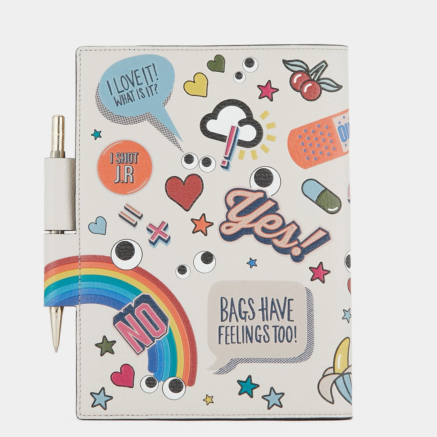 Remember the days of personalising your possessions with stickers? From school books to backpacks. Well, those days have officially returned, friends – although it’s now time for the grown-up version. Crafted from our signature textured leather, this dinky A5 notebook is covered in sticker-style embellishments that each take inspiration from some of our iconic motifs and collections.