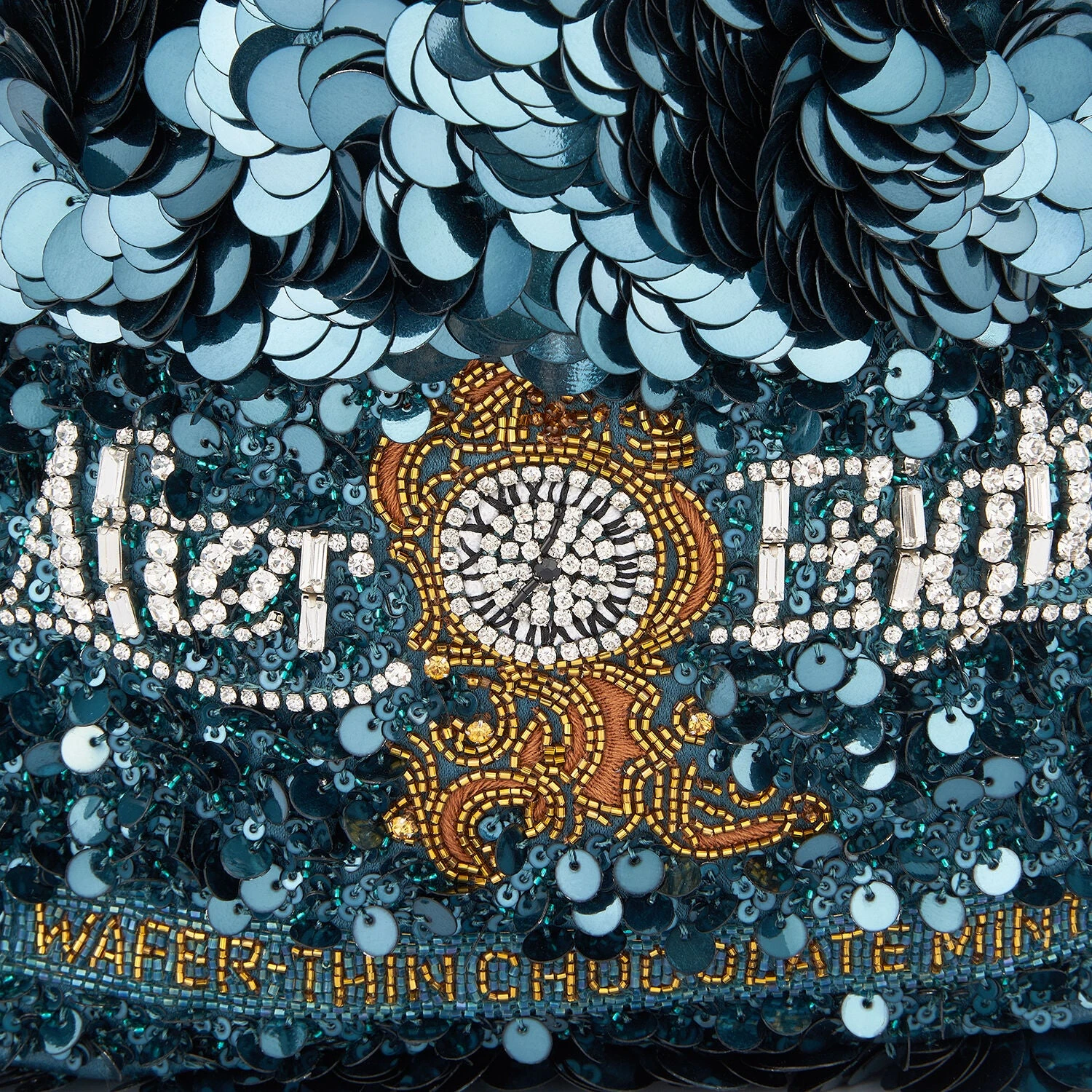 Roomy enough to accommodate the iconic chocolate that inspired it, this tote bag is the perfect place to stash a box of After Eight for a friend’s dinner party before you step out for the evening. Suspended from two handles, it’s embellished with a collection of shimmering sequins and beads that recreate the after-dinner staple’s packaging and is artfully embroidered with our signature box motif, too.