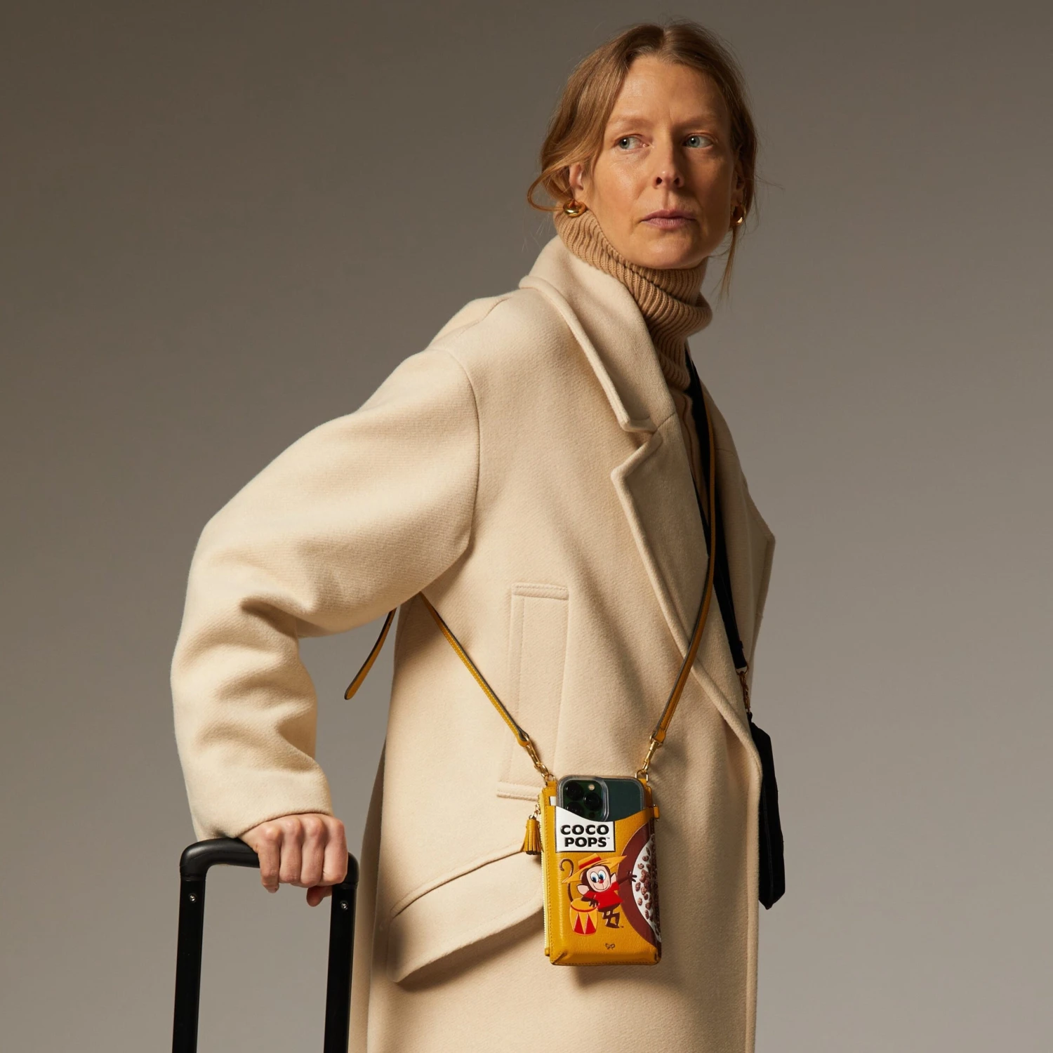 Not much of a morning person? Never fear; we’ve got something set to change that. Crafted from colourful capra leather, our Anya Brands Phone Pouch draws on your favourite breakfast cereal as inspiration, adorned with appliqués that recreate Coco Pops’ retro packaging. Fitted with a single slot to slip your smartphone into and an extra zipped pocket for your keys and card holder, this slimline pouch is suspended from a single cross-body strap.