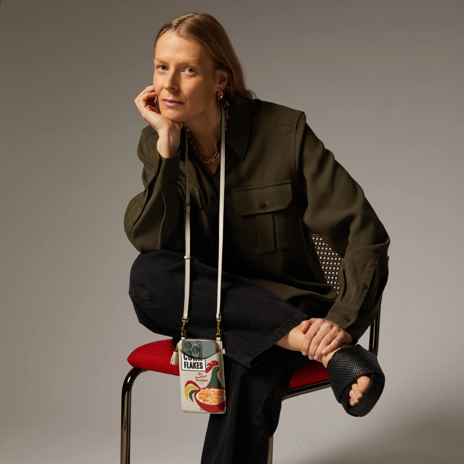 You know what they say: breakfast is the most important meal of the day. And we’ve taken that motto to heart with our latest range of phone pouches. Crafted from colourful capra leather, our cross-body Anya Brands bag is adorned with appliqués that recreate the instantly recognisable branding of Kellogg’s Corn Flakes – we won’t mind if you slip your smartphone into its slimline silhouette and take it out for a coffee and croissant instead, though.