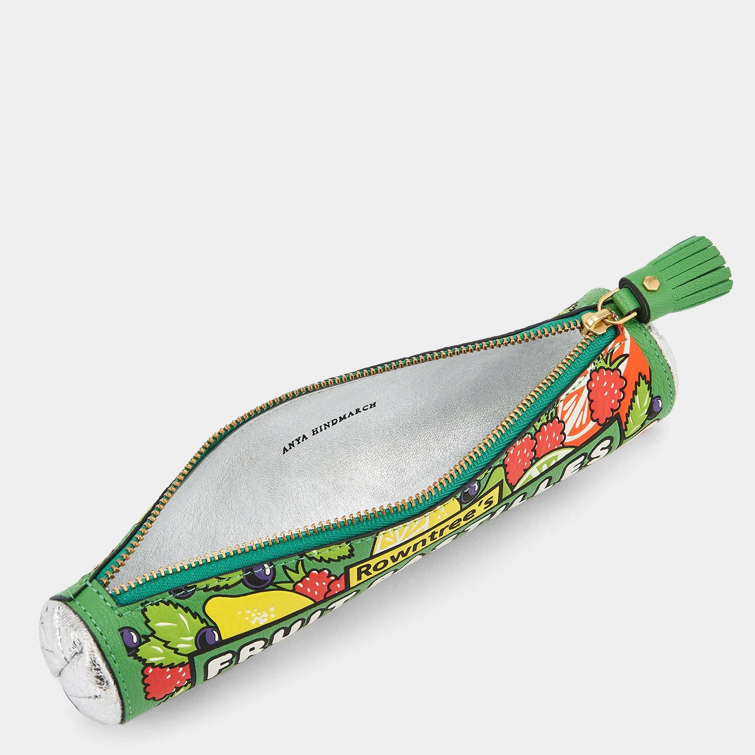 Those with a sweet tooth will find it hard to resist our Fruit Pastilles Pencil Case – a larger-than-life version of the iconic British treat. It’s rendered in glossy leather, printed with vintage artwork, and lined in silver to resemble that all-too-familiar foil. Note the tassel-adorned zip – a classic Anya touch. Fill it with pens and take it to your next meeting, or keep it on your dressing table, for make up brushes and such.