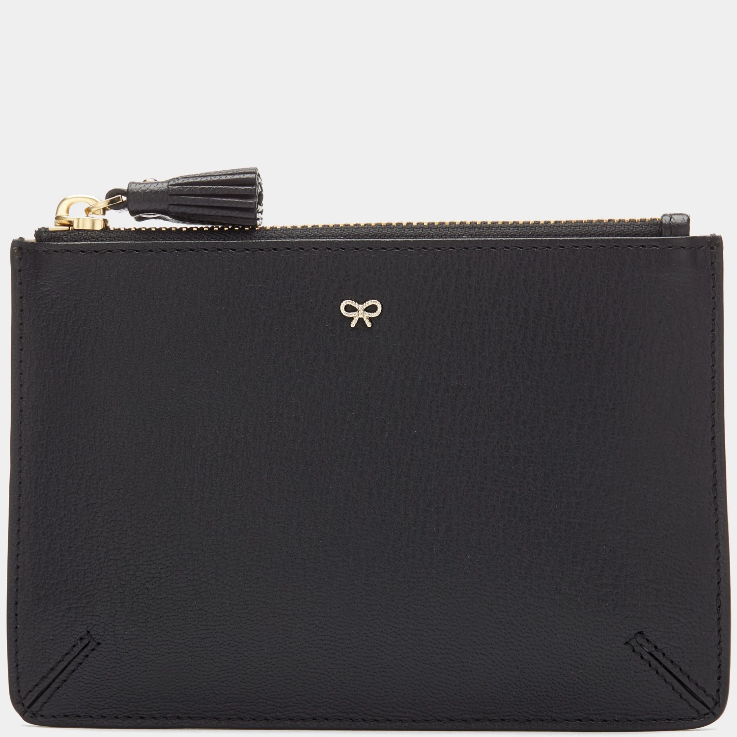 Personalised with a handwritten or typed message of your choice, our Small Loose Pocket is a very thoughtful gift. Made from capra leather, it fastens via a tasselled zip and comes gilded with our golden bow, inside and out. It can be used for whatever you intend – spare change, love notes and lucky charms are just three suggestions.