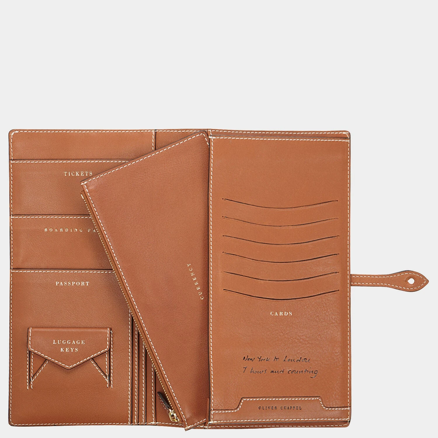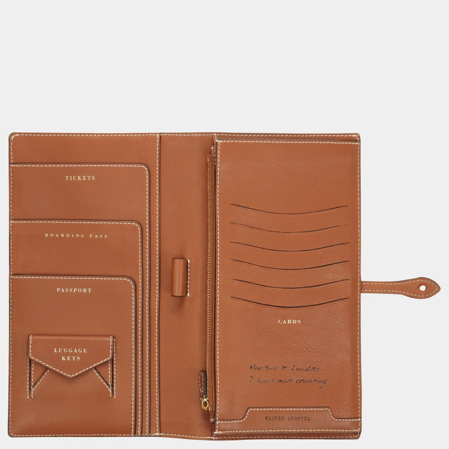 This folio will make you the most organised and elegant of travellers. Inside you will find labelled compartments for luggage keys, your passport, tickets and cards and a loose pocket for your currency. There is also a pocket for e-tickets and itineraries. Find a St Christopher card tucked away to keep you safe on your travels.