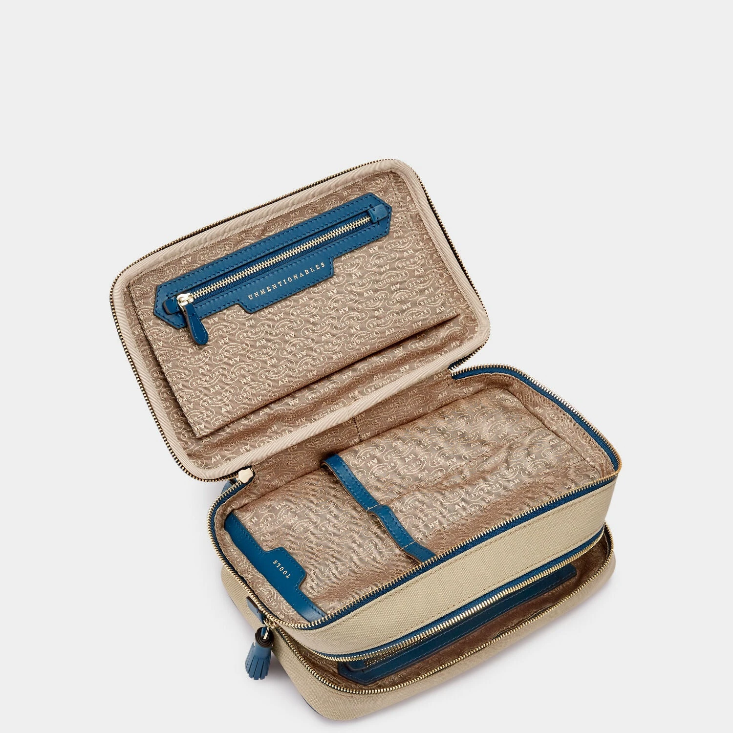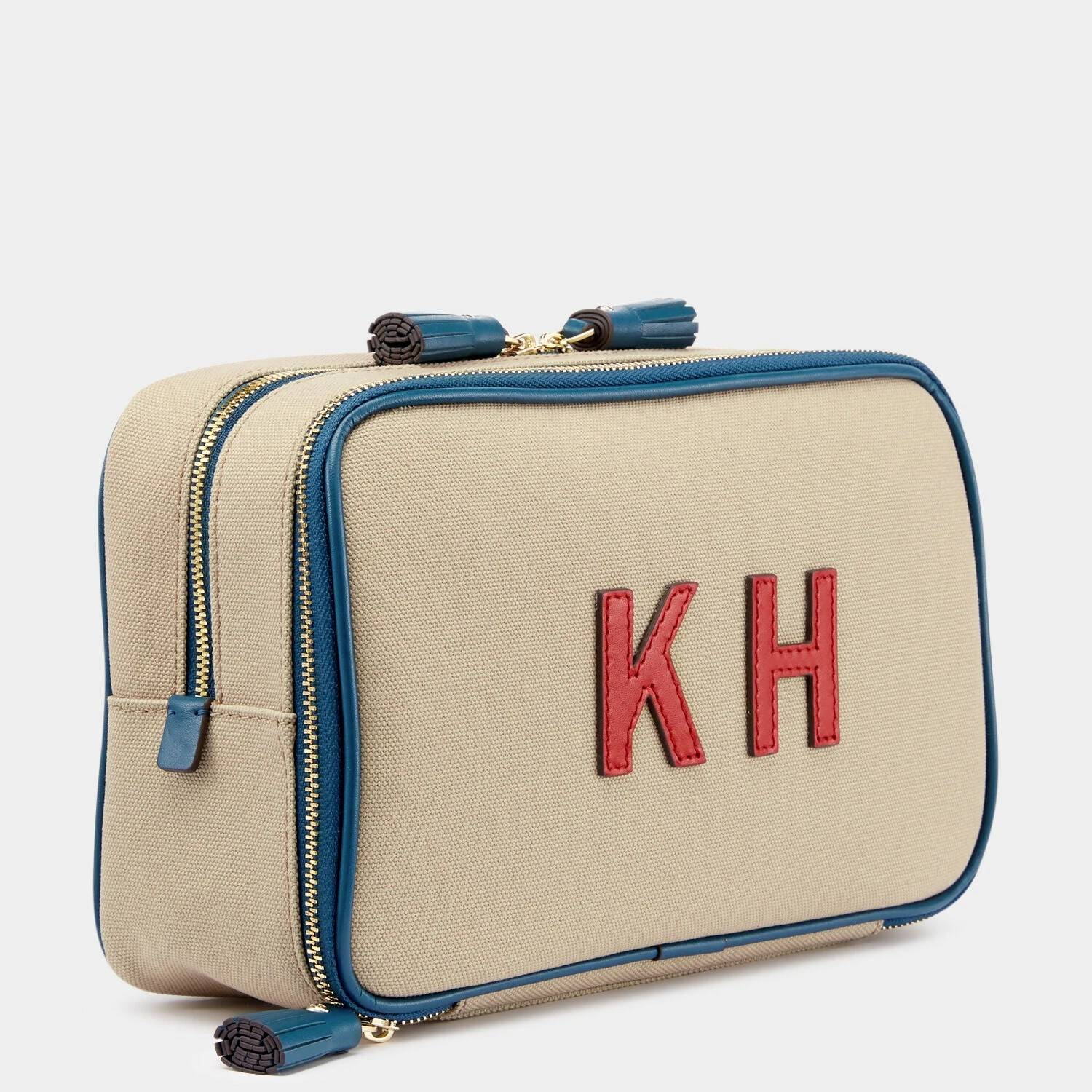 When you’re on trips away, make getting ready a joy with the Bespoke Walton Wash Bag. Crafted from durable canvas with sleek leather trims, it can be personalised with a contrasting leather monogram. It may be compact but it houses multiple sections to keep makeup, showering essentials and other bathroom bits perfectly organised. There are two zipped compartments, within which we have added labelled sections for tools, unmentionables, and more.