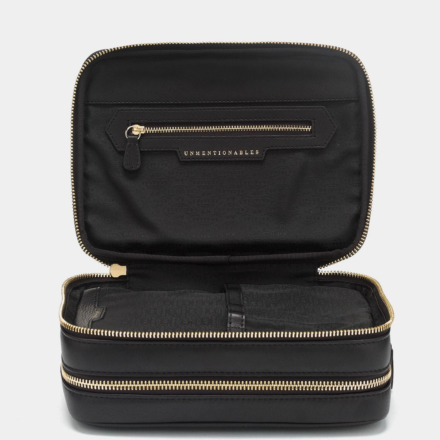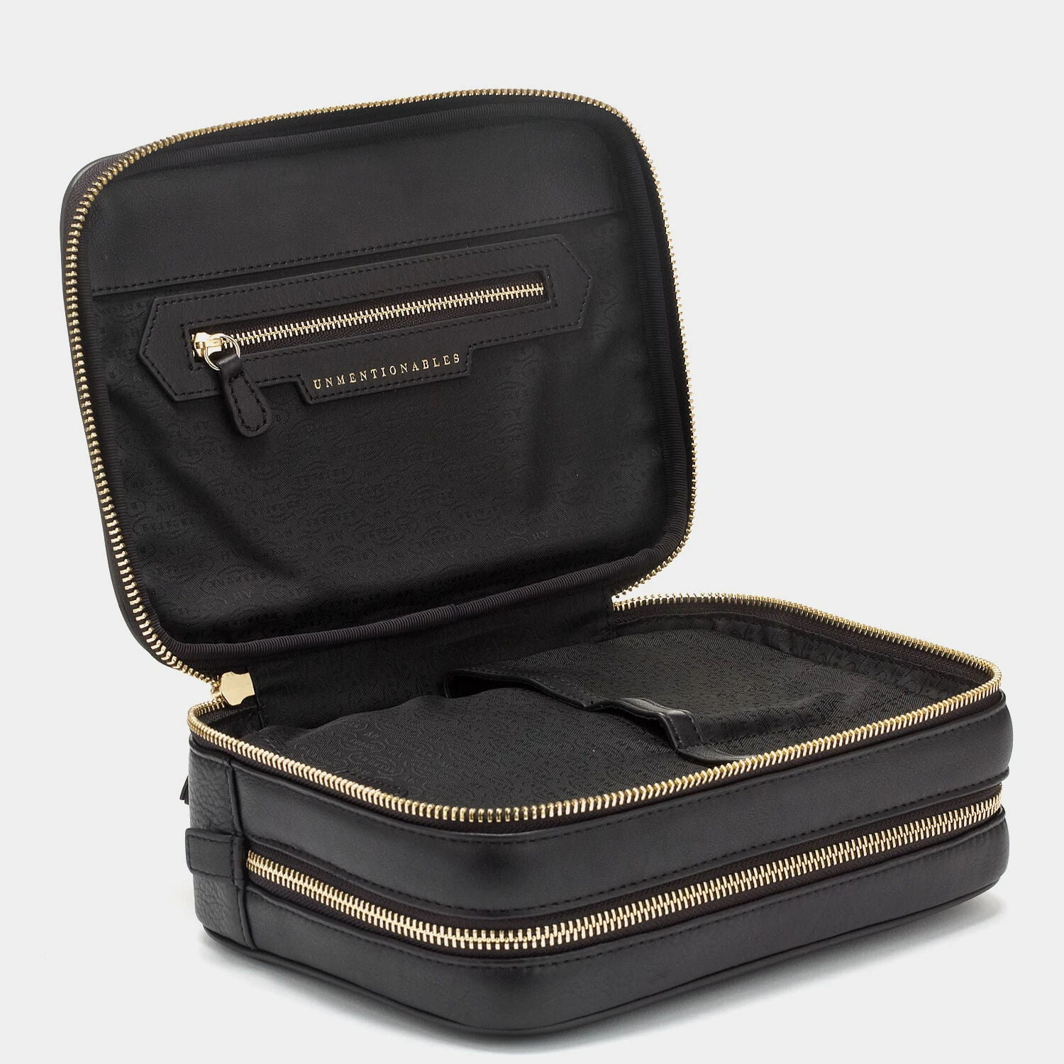 Crafted in the softest butter leather, this zipped wash bag is the perfect travel companion. Featuring two main compartments, each fastened with our signature tassel zip fastening, the waterproof interior has additional labelled pockets for ‘remedies’, ‘tools’ and ‘unmentionables’. Personalise with your name, initials or handwritten message for a truly unique gift.