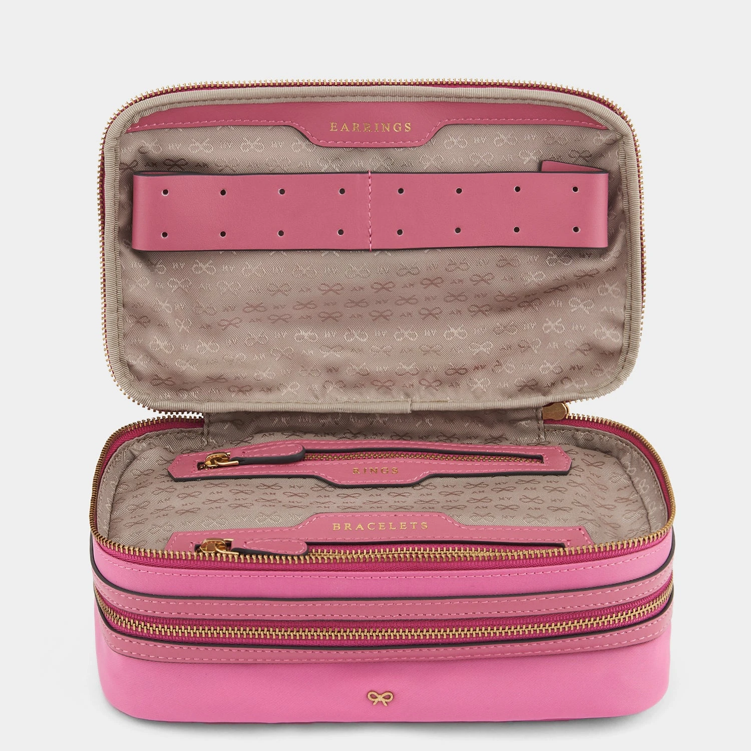 There’s a lot to keep track of on your wedding day, but where your bridesmaids’ jewellery is won’t be on the list because we’ve crafted this version of our jewellery keeper specifically for them – it’s even stamped with the word “bridesmaid” on the outside in gold-toned lettering. Divided into two compartments, there’s specific places to secure earrings in the top one alongside places for bracelets and rings and room for necklaces in the bottom. Forever useful, keepsake from your big day.