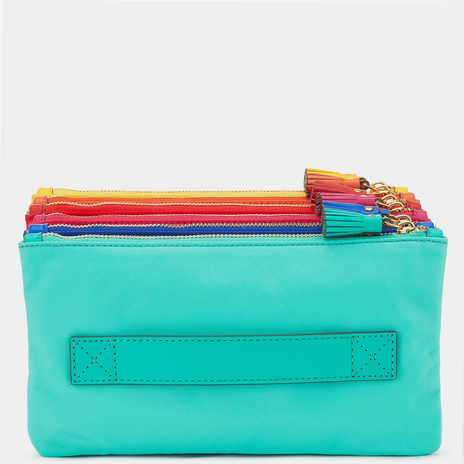 An organisational dream, the Filing Cabinet is the latest addition to the labelled collection. Ideal to hang on the back of the bathroom door or to keep on your desk, it has six separate zipped sections in contrasting colours and a leather label embossed with Filing Cabinet.