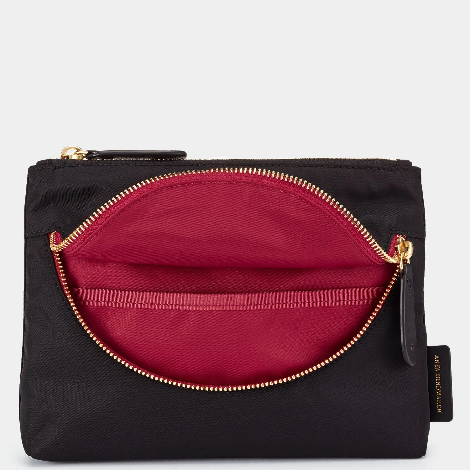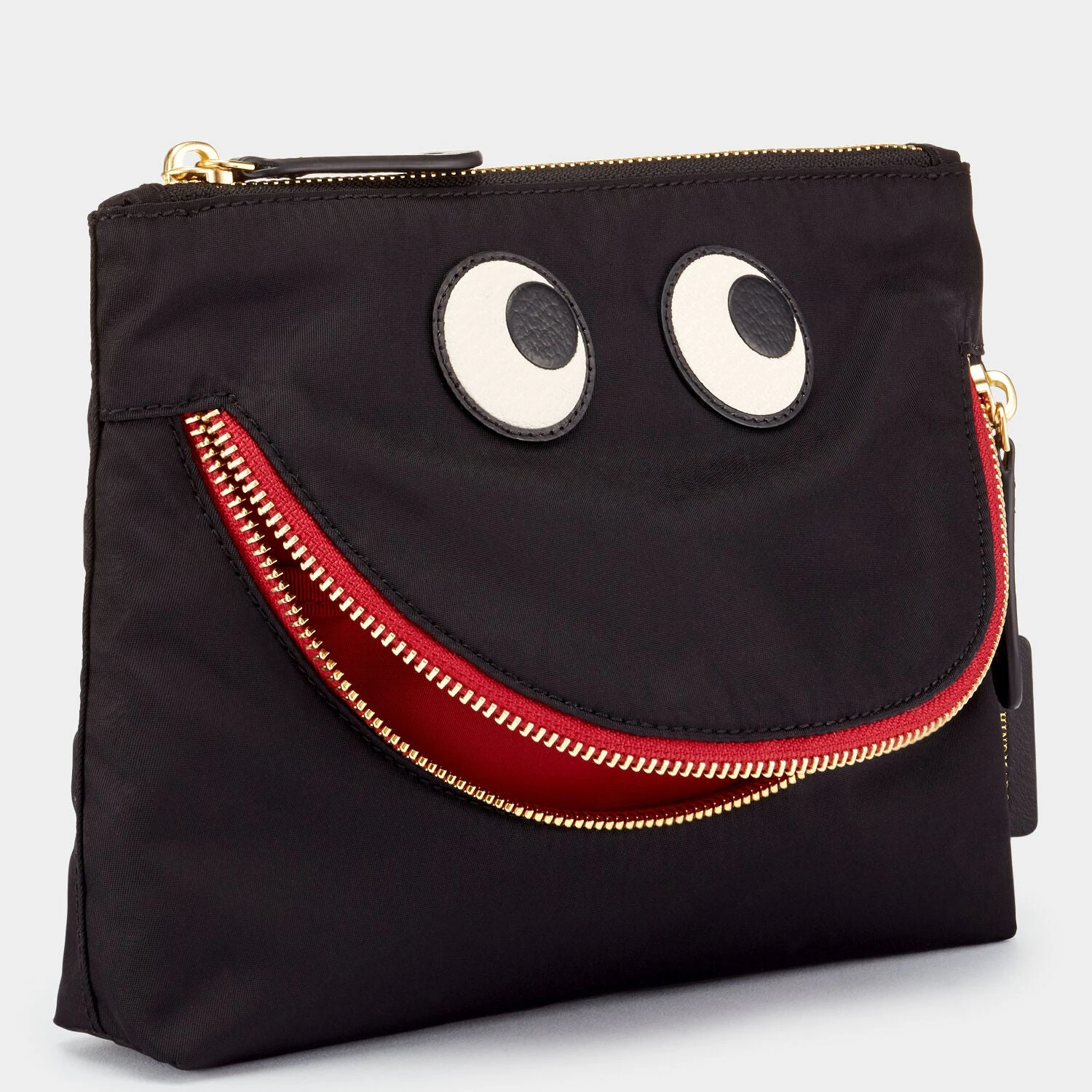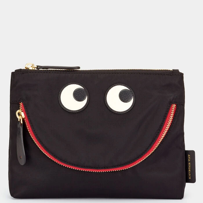 With leather eyes and a playful expression, the Happy Eyes Pouch in ECONYL® regenerated nylon offers our irreverent style in a sporty, lightweight finish.