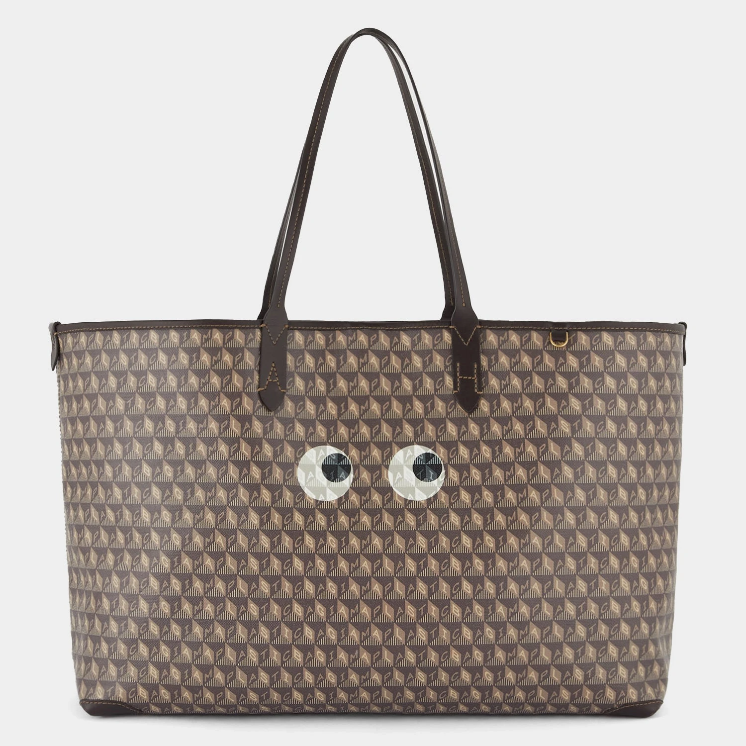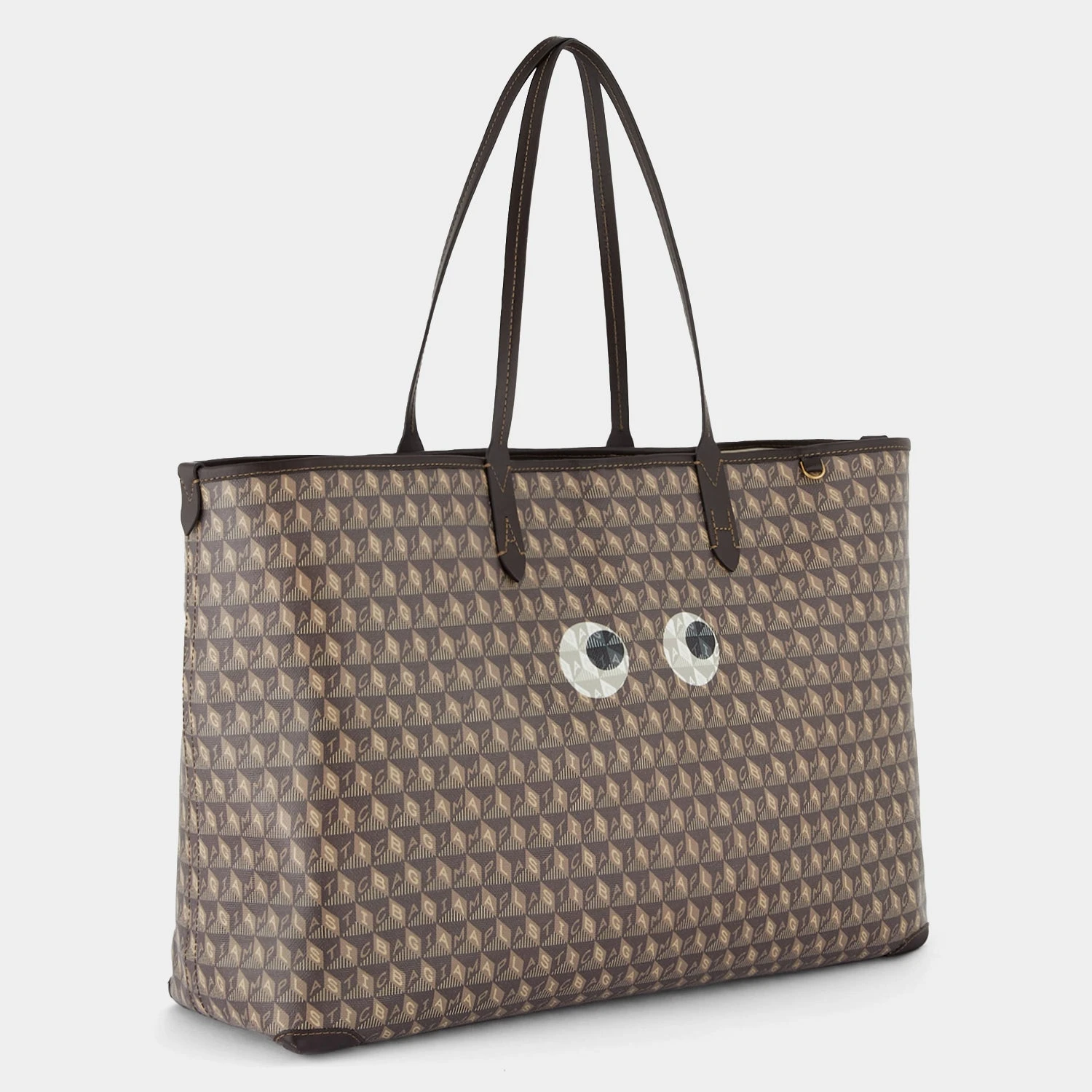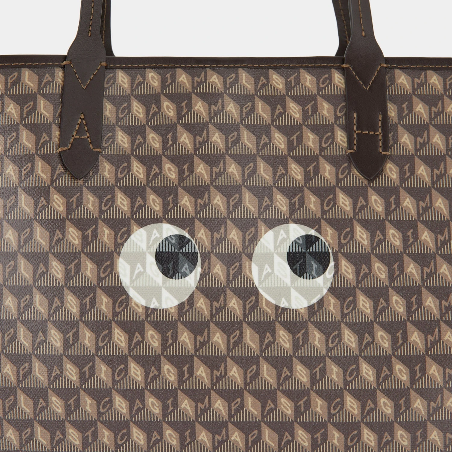 Part of the I Am A Plastic Bag collection, this eyes edition tote bag is made from 32 half-litre plastic bottles, previously destined for landfill. The bag is made from an innovative cotton canvas-feel fabric created from used plastic bottles and coated in a material made from car windshields to give it a durable and weather-resistant finish.