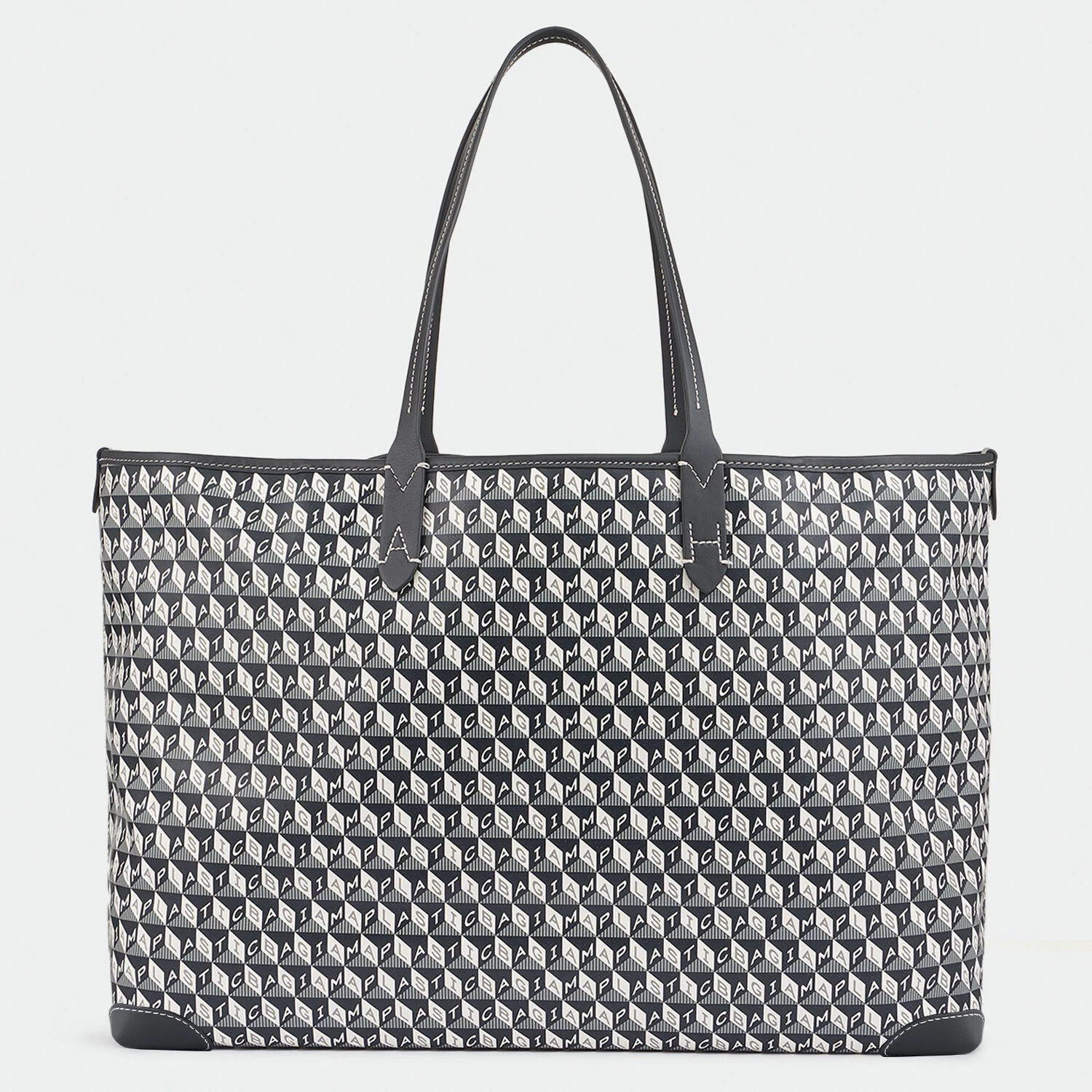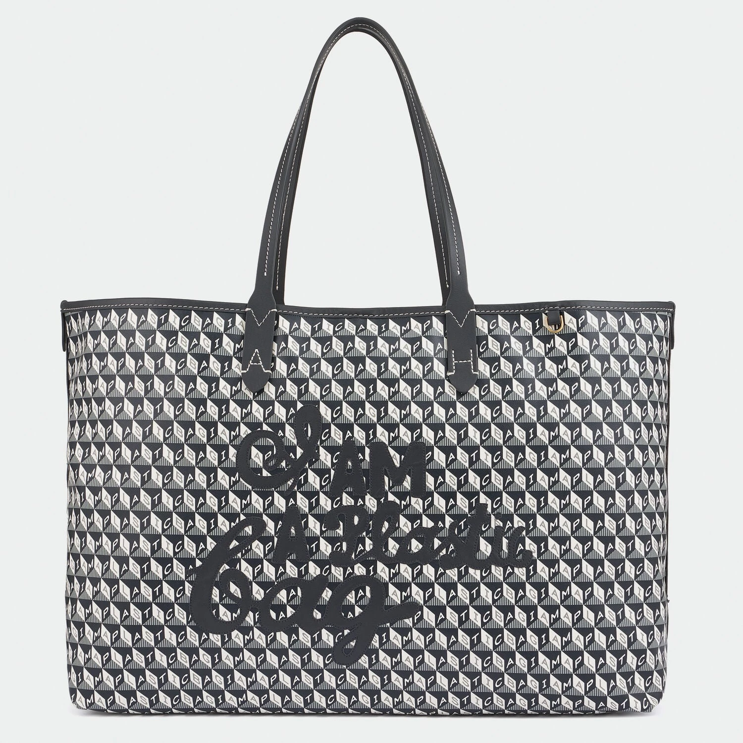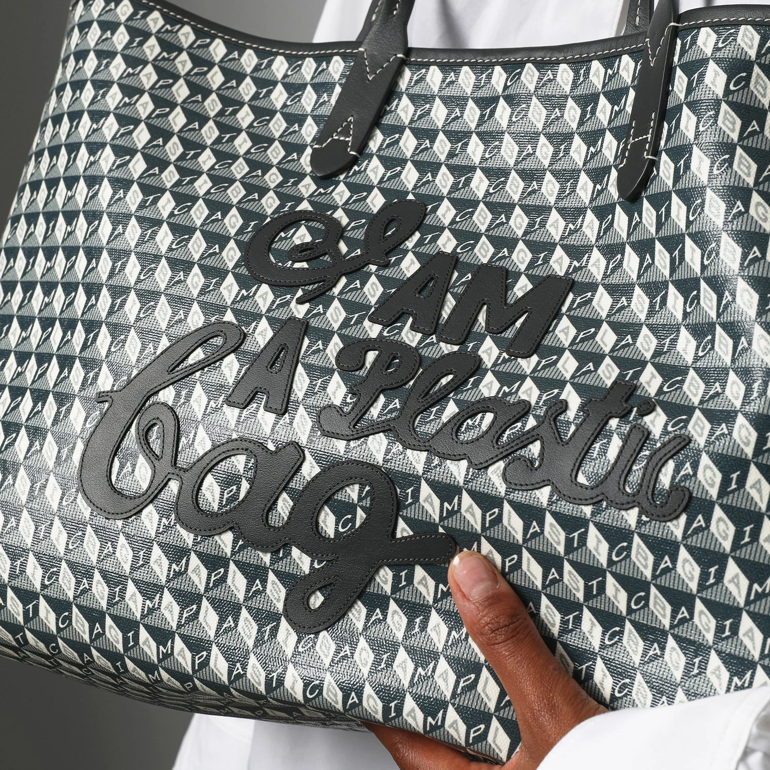 The bag’s print features the brand’s AH monogram and is finished in leather from a Gold Standard Working Group Tannery to ensure full traceability of byproduct skins with no deforestation. Inspired by the original I’m Not A Plastic Bag tote, the I Am A Plastic Bag motif is hand-cut and embroidered to the outside whilst the inside reveals a leather-trimmed zipped pocket with a labelled leather card holder.