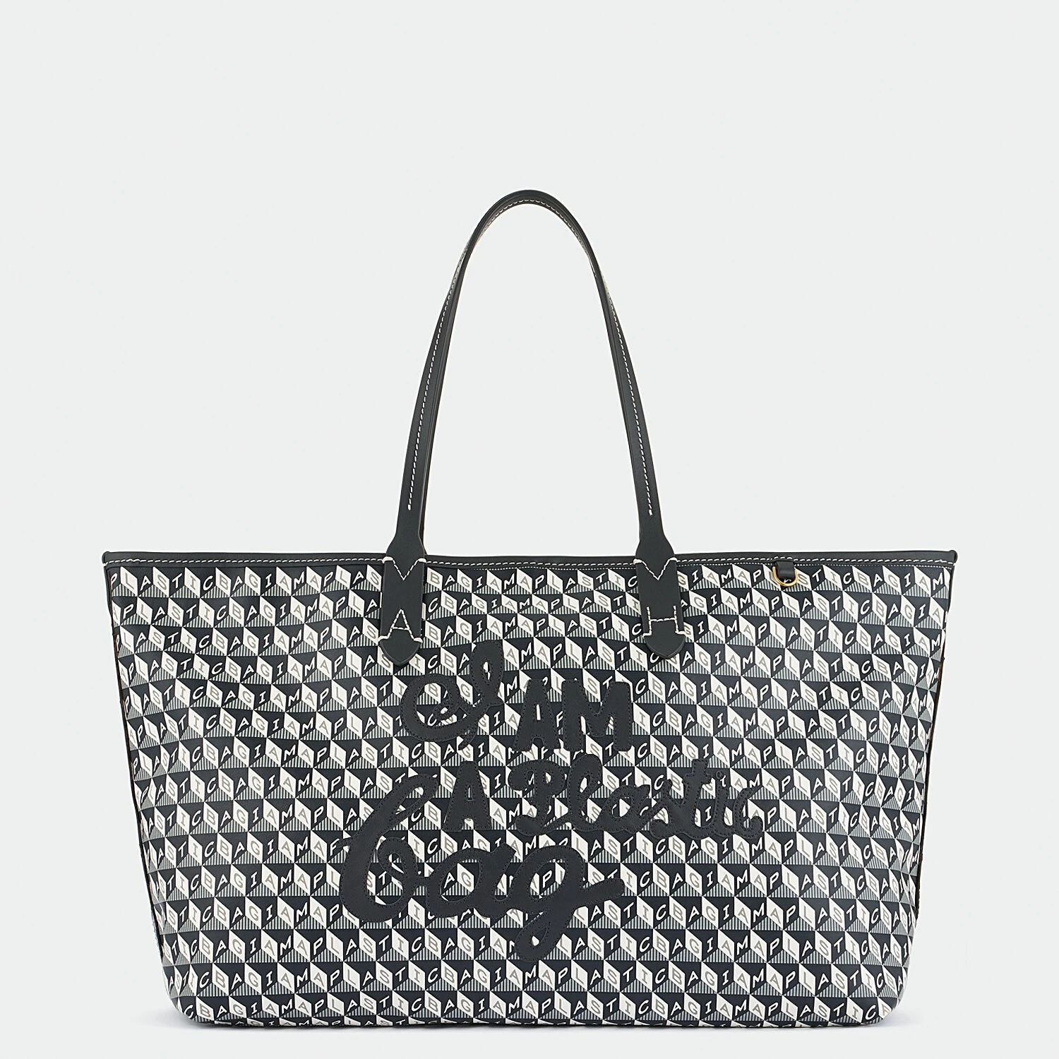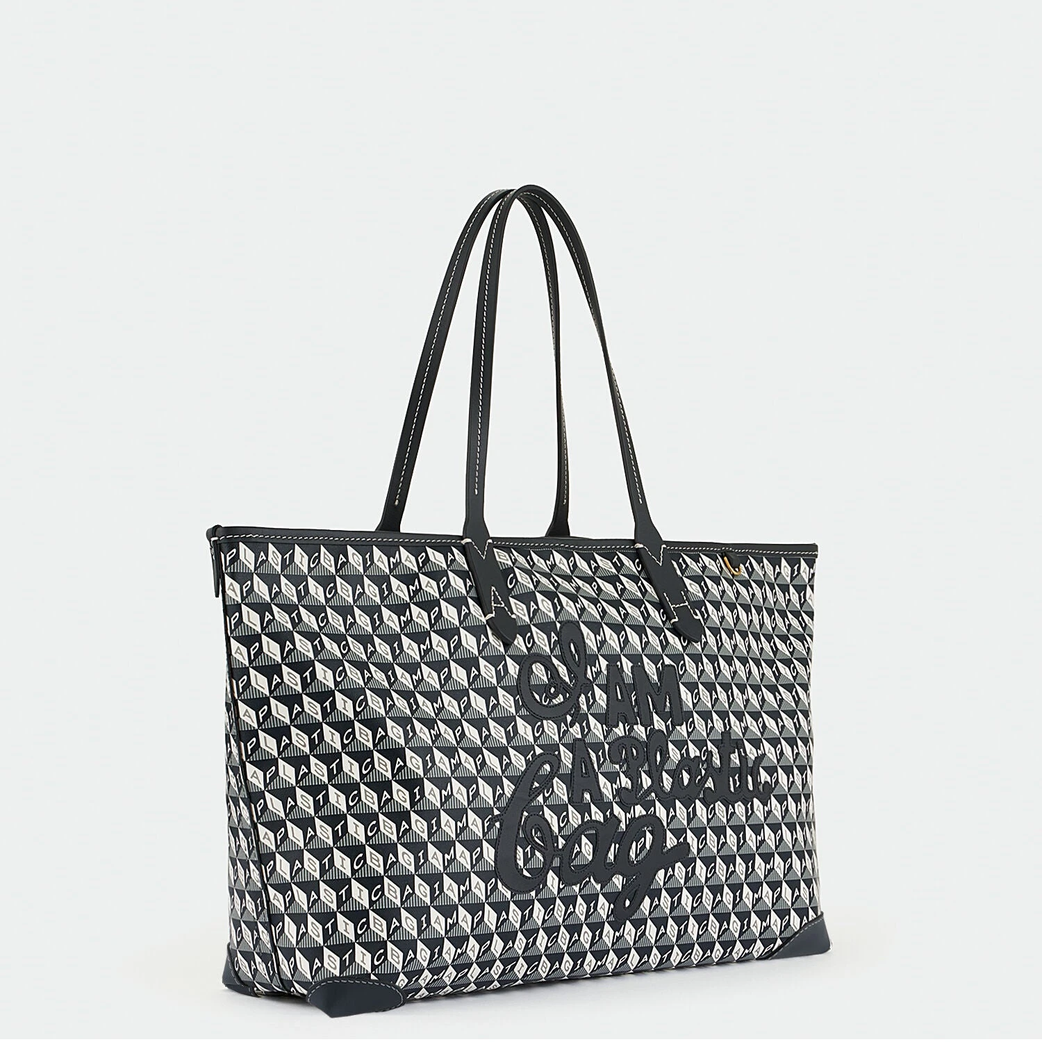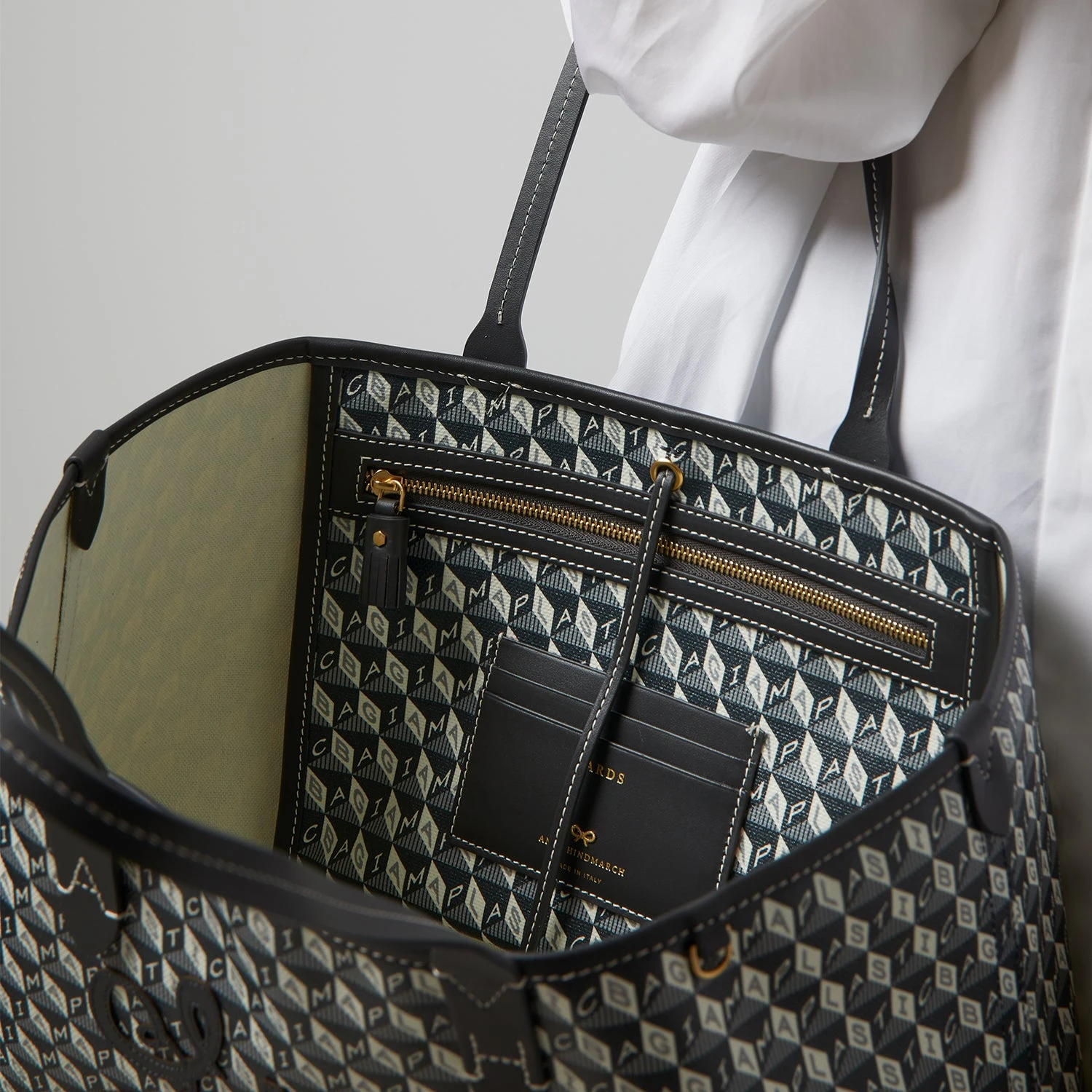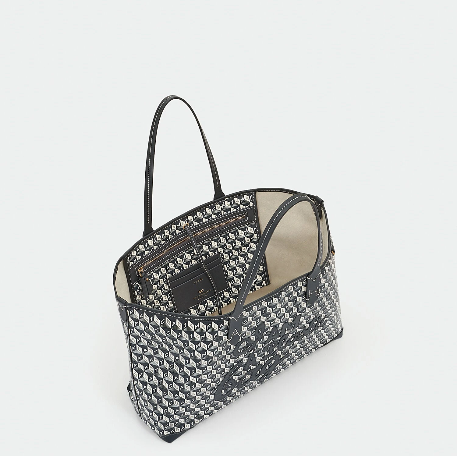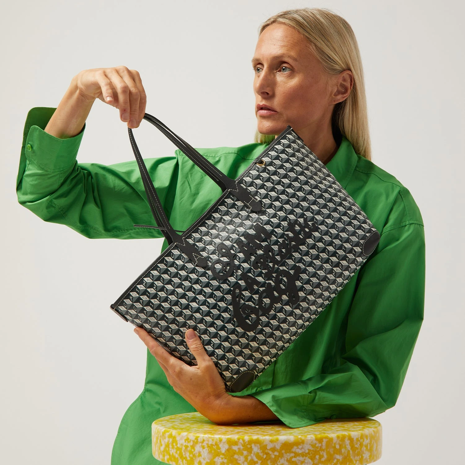 The bag’s print features the brand’s AH monogram and is finished in leather from a Gold Standard Working Group Tannery to ensure full traceability of byproduct skins with no deforestation. Inspired by the original I’m Not A Plastic Bag tote, the I Am A Plastic Bag motif is hand-cut and embroidered to the outside whilst the inside reveals a leather-trimmed zipped pocket with a labelled leather card holder.
