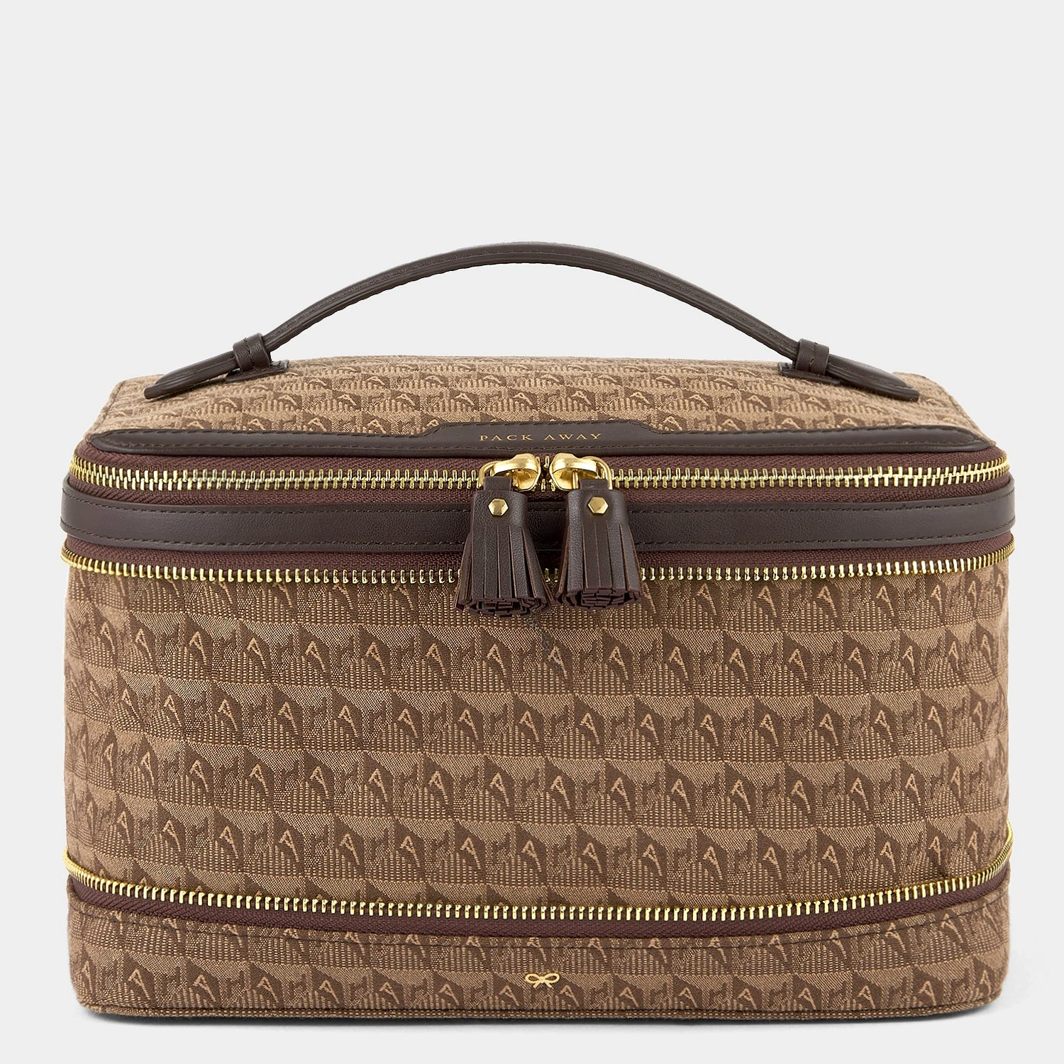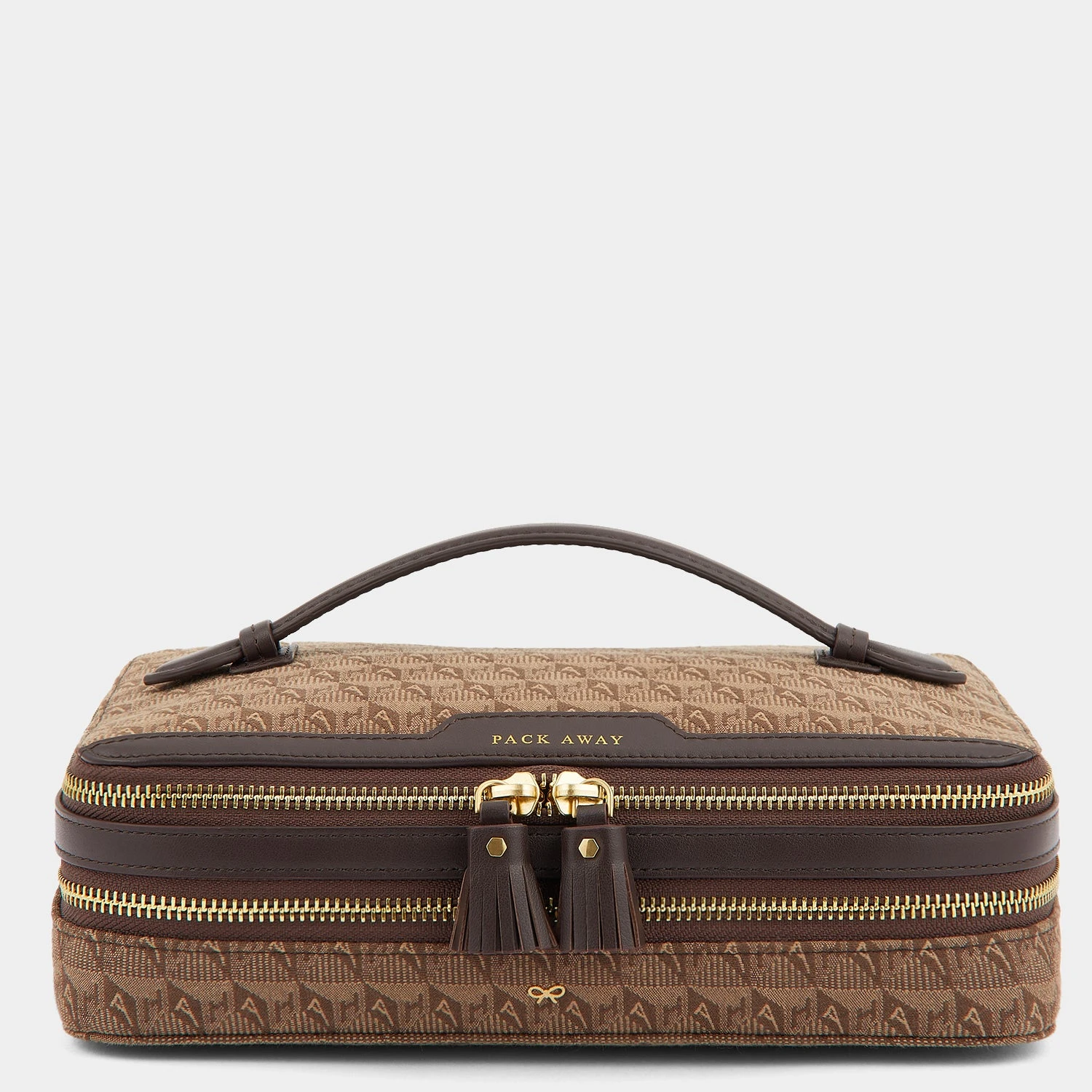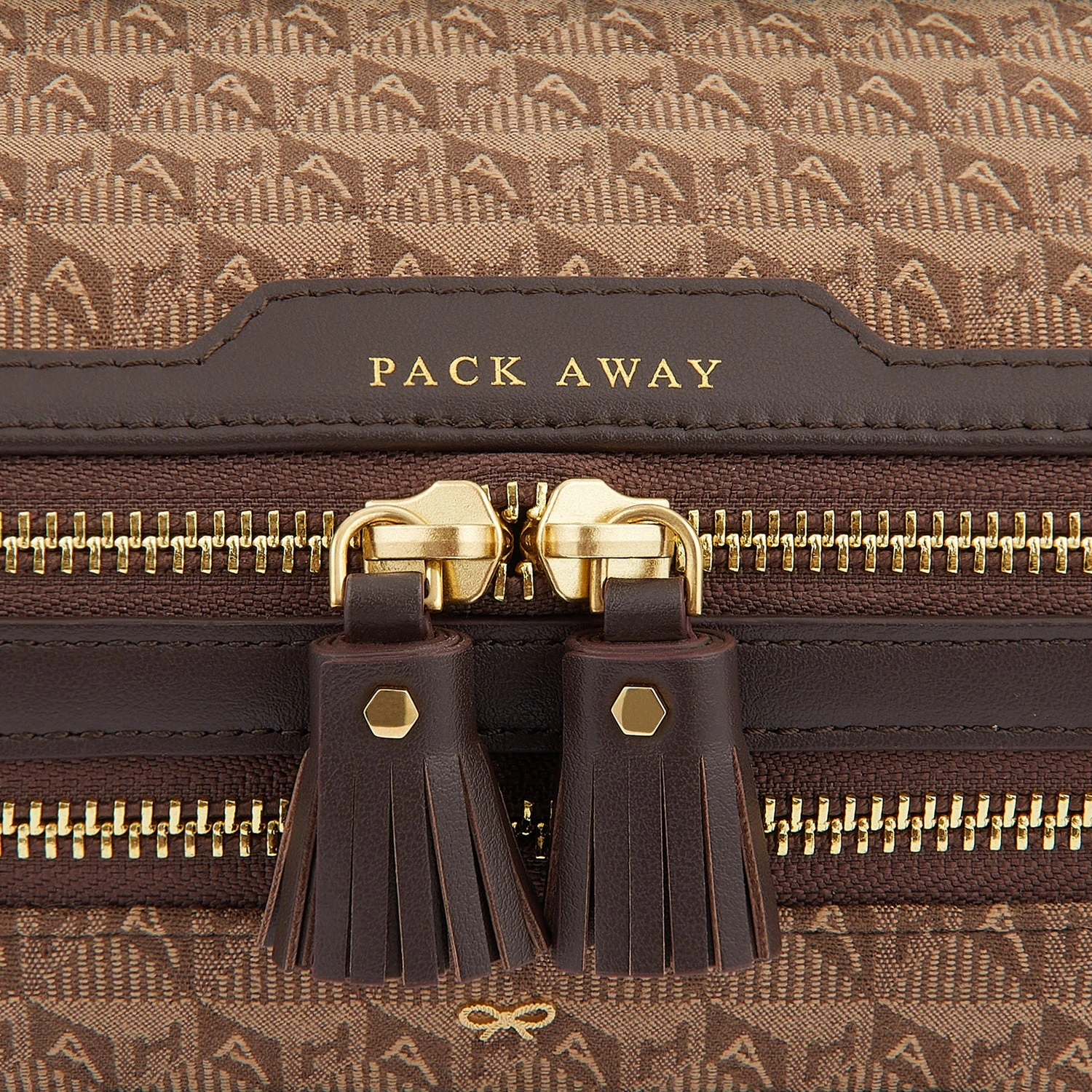 Discover the epitome of travel convenience with the Pack Away in the new dark earth shade in jacquard cotton. Expertly designed for the modern wanderer, this masterpiece boasts an array of internal compartments to effortlessly organise your essentials. No more mixing clean with dirty – the included laundry bag keeps things neat. And when your journey ends, its collapsible design ensures easy storage. Elevate your travels, embrace sophistication – with the Jacquard Pack Away. Where style meets functionality, your adventure awaits.