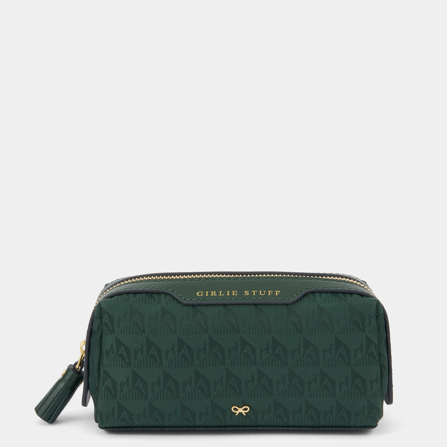 Made from monogrammed nylon, the latest incarnation of our classic Girlie Stuff Pouch is surrounded by smooth-leather trims for a hardy, durable silhouette. Small enough to stow into your suitcase or overnight bag, but still spacious enough to store your essentials inside, this handy hold-all is perfect for keeping those essential things close at hand – whether it’s spare bits of makeup, charging cables for long journeys or jewellery that you want to keep separated.