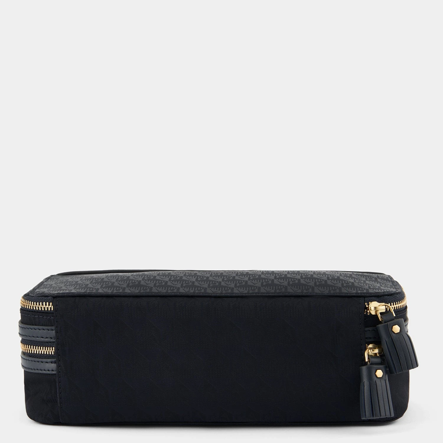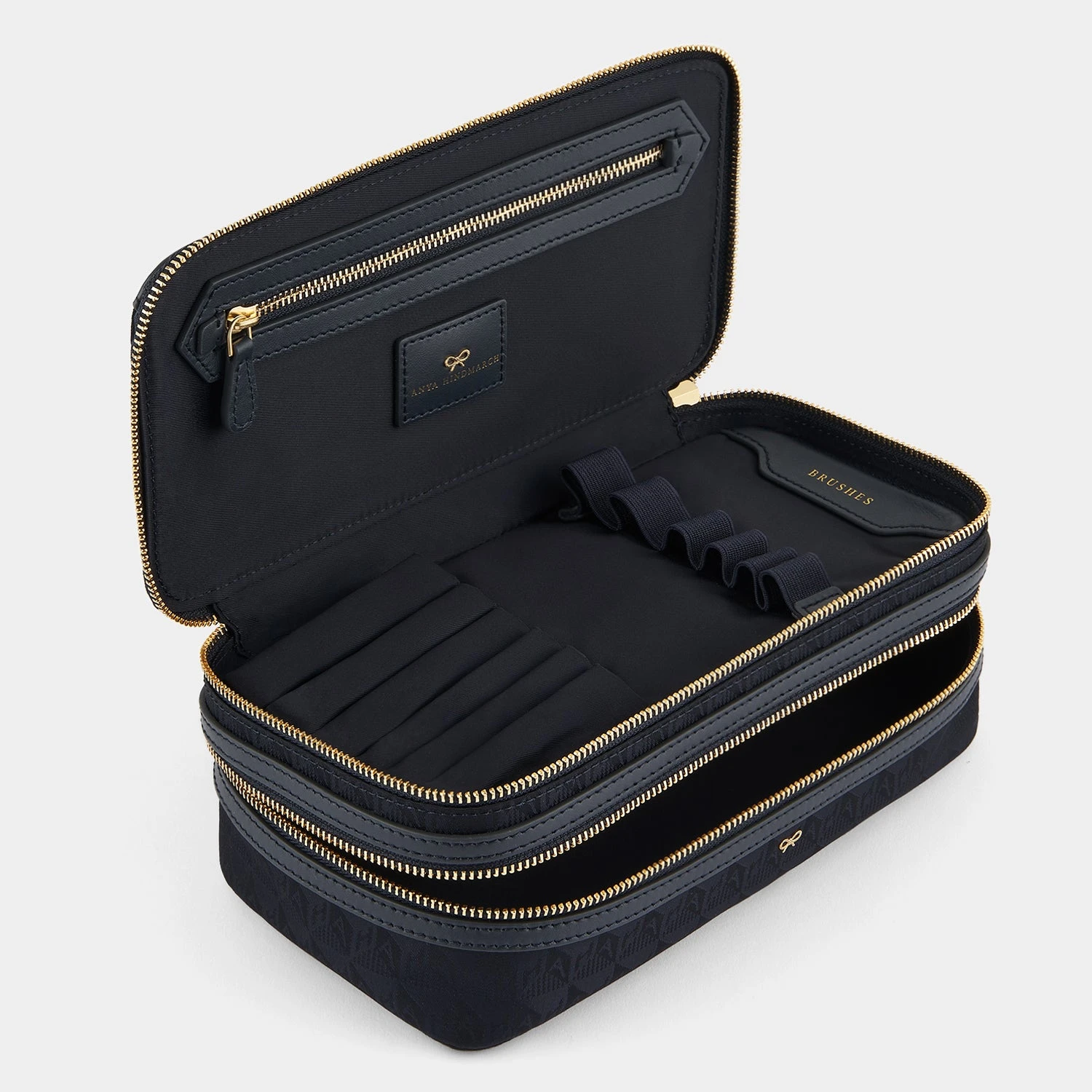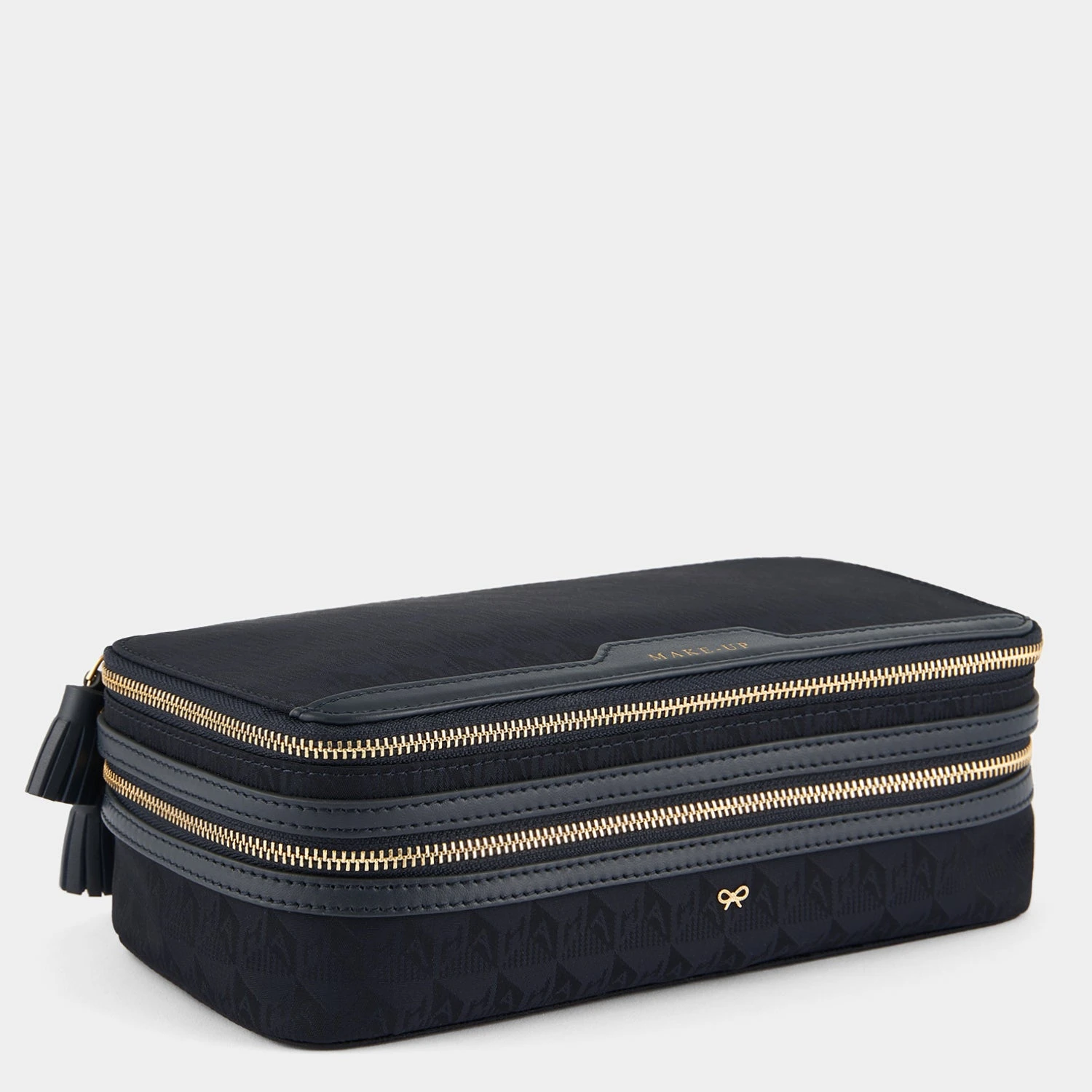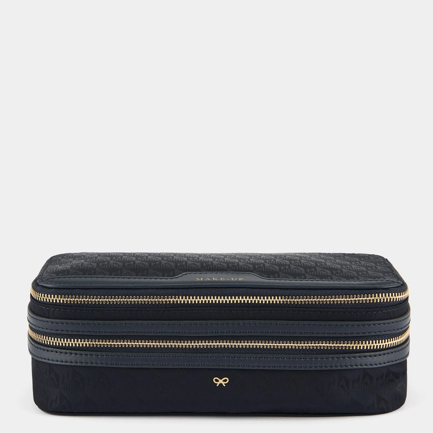 With a streamlined yet cleverly organised design, our two-tier Make-Up Pouch case is a must-have for both long-haul trips and weekends away. Made from marine blue monogram-print nylon, its dual, zipped compartments will keep make-up brushes separate from products like eyeshadows, blusher, lipsticks, and more – ensuring everything stays clean and easy to locate. And of course, it comes decorated with an embossed label and our bow motif, both in gold.