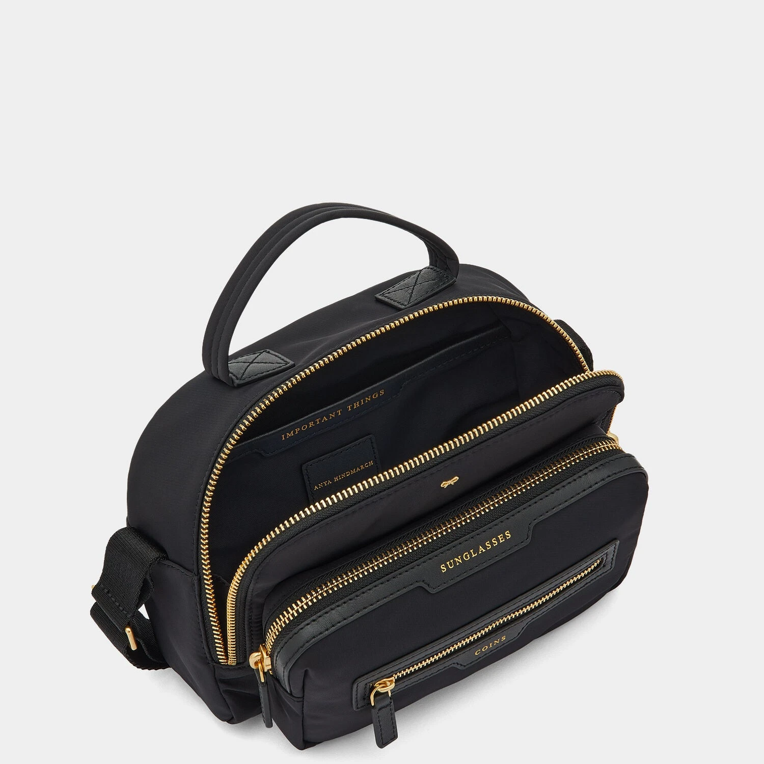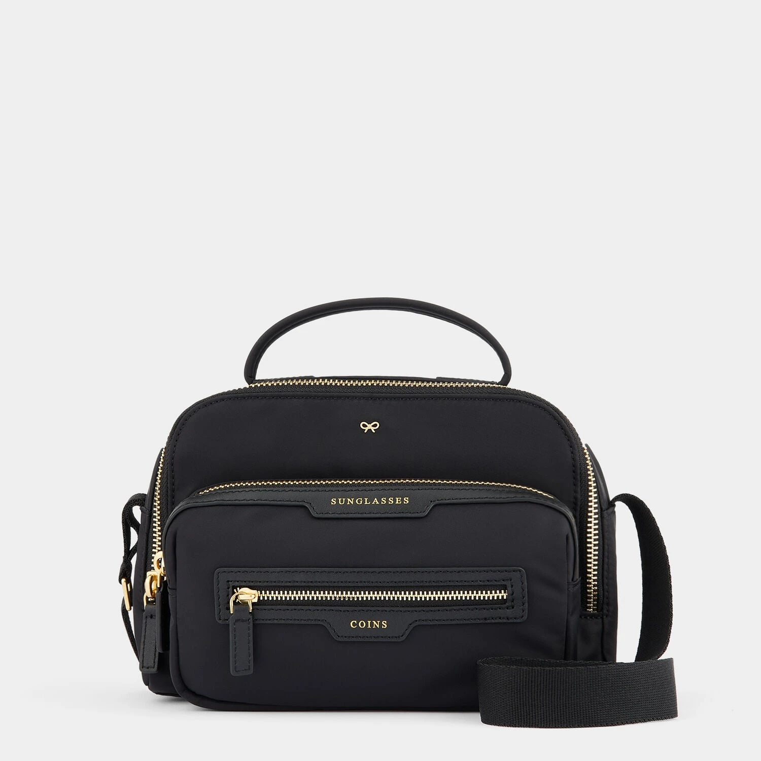 This practical cross-body is the ultimate off-duty bag combining both style and function. The utmost realisation of our labelled collection, this new-season recycled nylon Cross-body keeps you hands-free and has all bases covered, with a roomy central pocket for your phone, bits and bobs, and labelled pockets for SUNGLASSES and COINS.