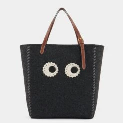 Our signature eyes emblem has been putting a smile on the face of new and loyal fans for decades, and it sits proudly at the front of this tote. Crafted from recycled felt as part of our founder’s commitment to lessening our impact on the planet, this style’s spacious silhouette suspends from a set of smooth leather carry straps so that you can sling it over your shoulder when you need to be hands-free.