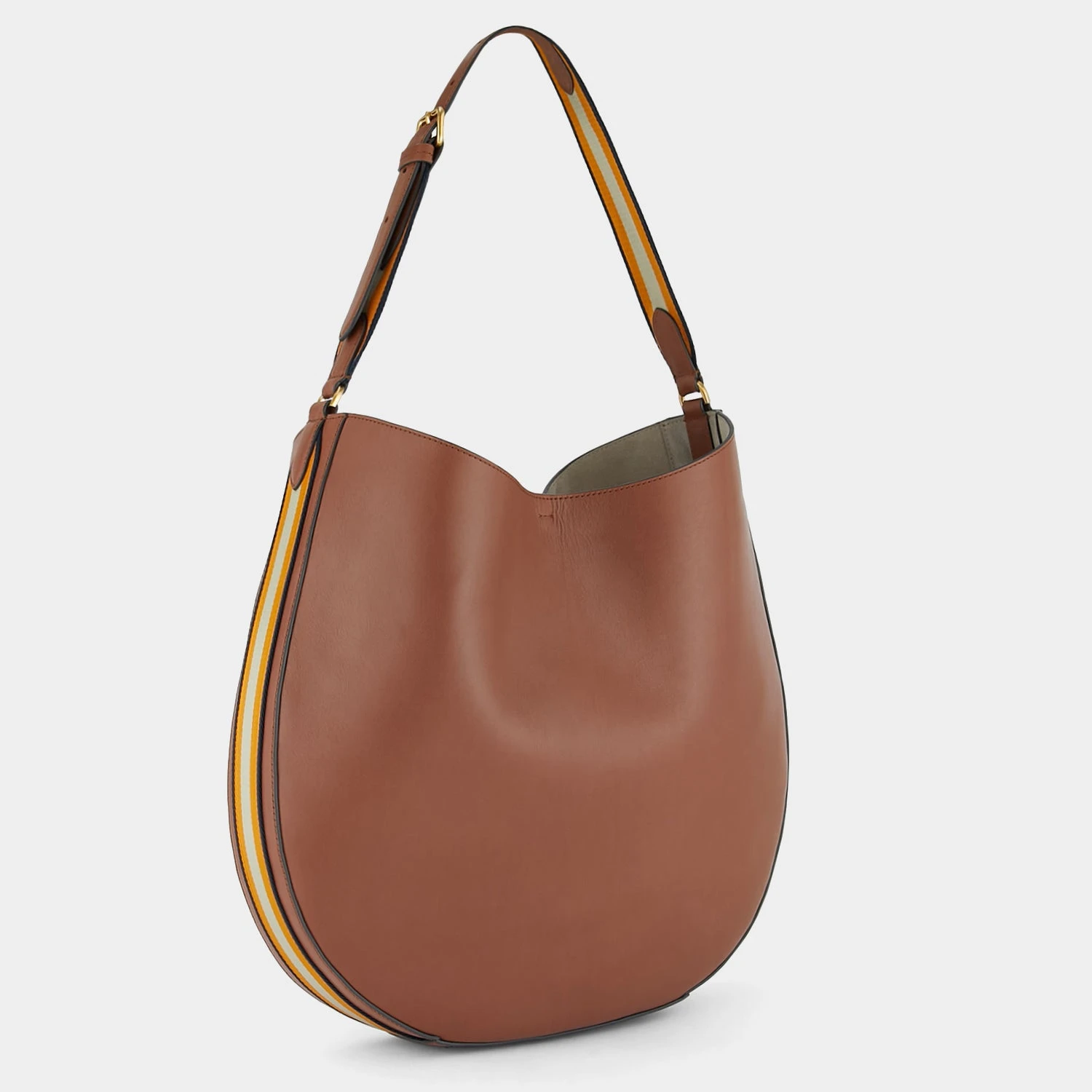 A roomy hobo with enough space for your essentials – and then some – our Nastro hobo is crafted from smooth leather and is shaped to an organic curved silhouette. Suspended from straps that secure with gold-toned hardware, it’s outlined with striped trims that add a playful touch of colour to the style and has a handy separate case designed for your phone, cards, and sunglasses that can be secured to the base of the strap so it never strays far.