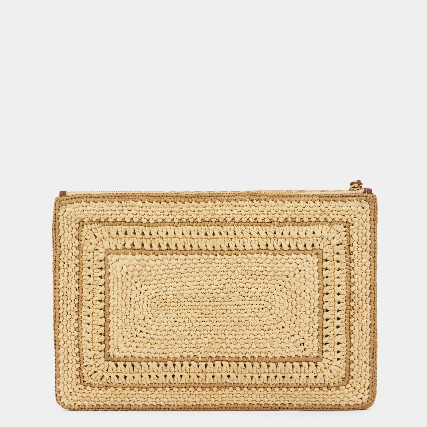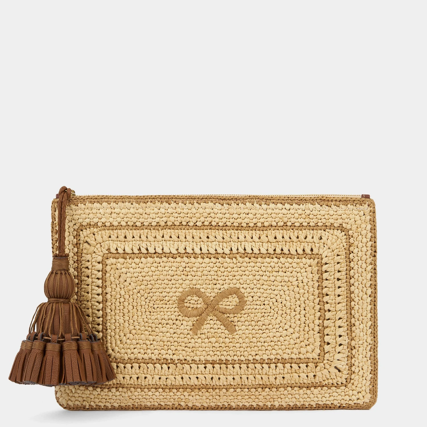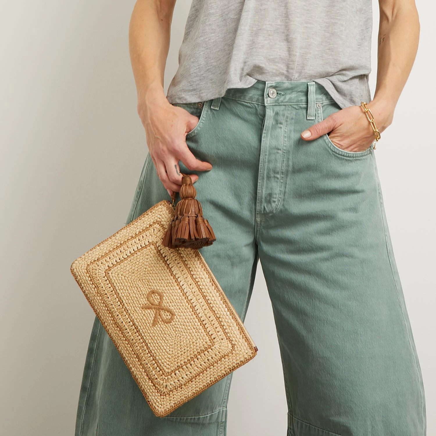In natural raffia with capra-leather detailing, the much-loved Georgiana Clutch is perfect for summer parties and holiday styling alike. Note the finer details, from the contrasting stitching and woven bow, to the handmade, oversized tassel adorning its zip. Keep essential cards in the logo-embossed leather pocket, inside.