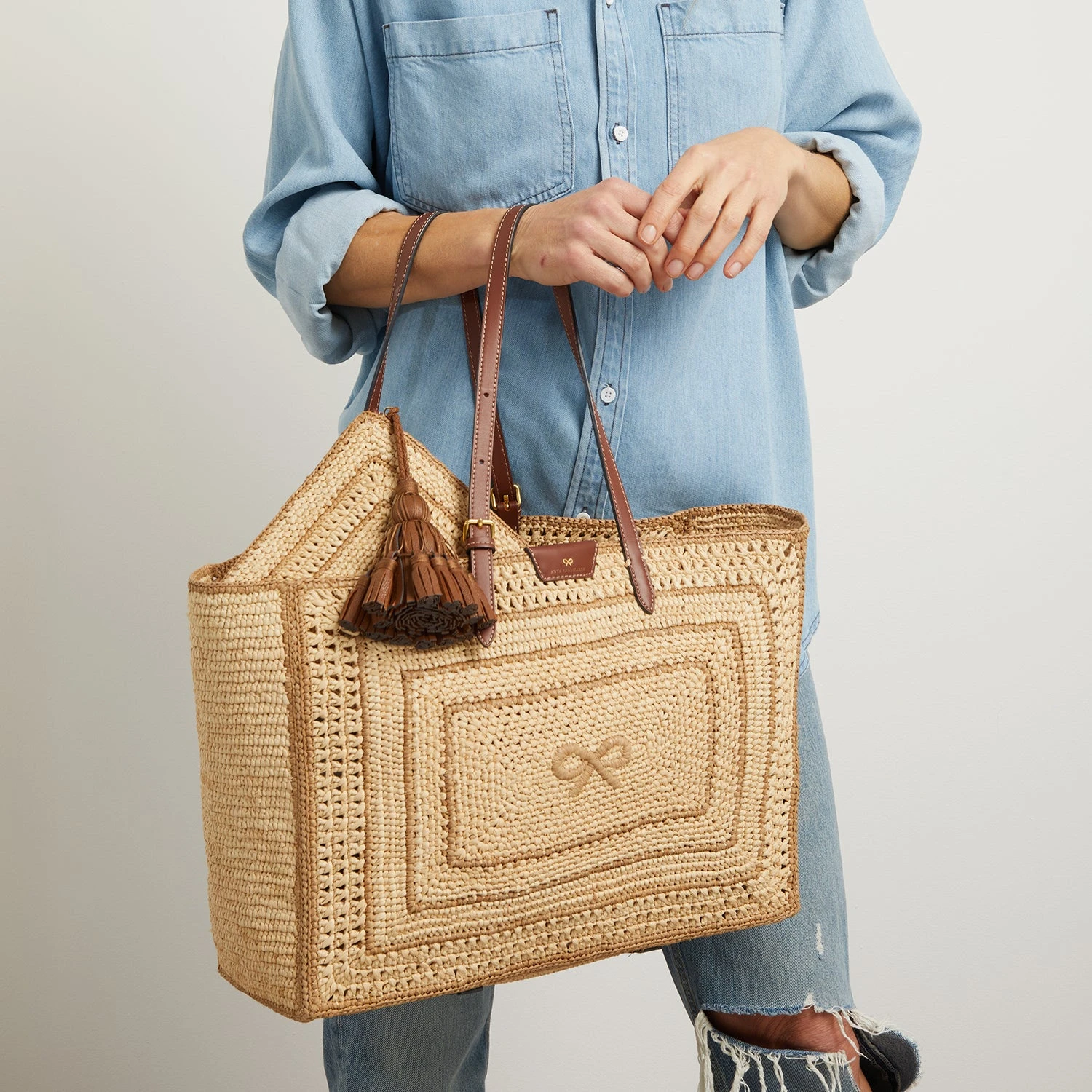 Our extra-special take on the classic basket bag, the E/W Bow Tote is a style you’ll reach for all summer. It’s woven from natural raffia and finished with contrasting stitching and our trademark bows – one crocheted at the centre, another gilding the magnetised leather tab, via which the bag opens and closes. There are other lovely details too – the leather feet at the base and adjustable shoulder straps, for example.