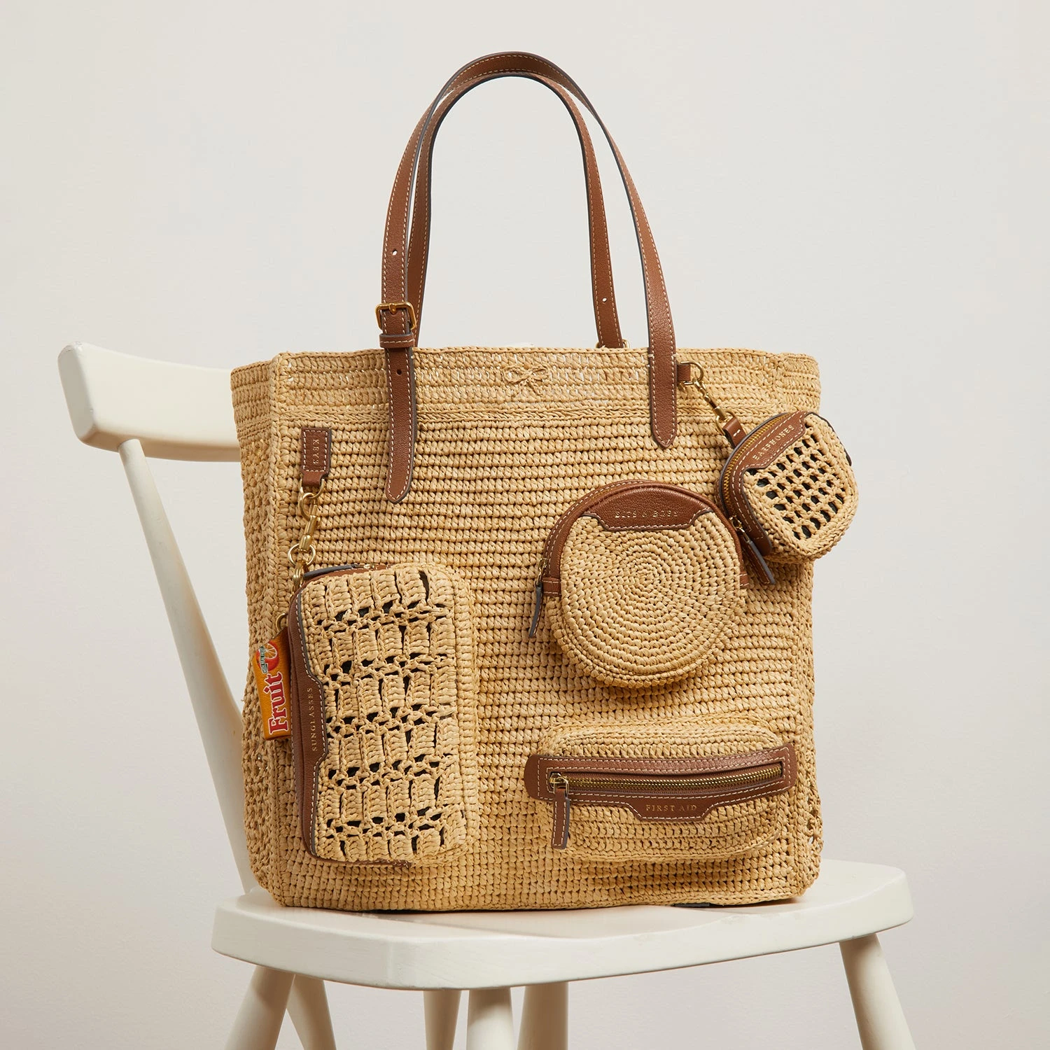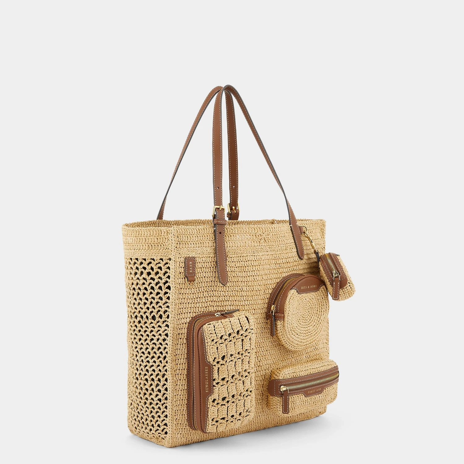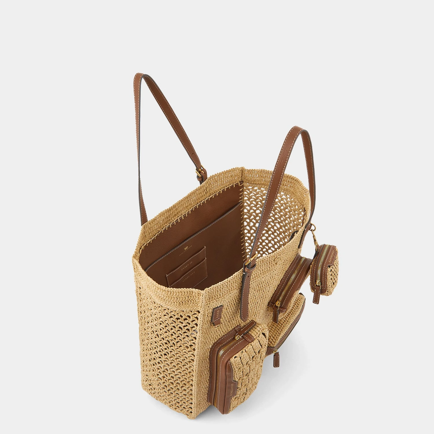 Chic and practical in equal measure, the Holiday Tote is designed to keep you organised on sun-drenched getaways. It is crocheted from natural raffia, with external compartments for earphones, first aid items, sunglasses, and bits and bobs. Stow cards in the interior leather pocket and adjust the leather handles to your desired length.