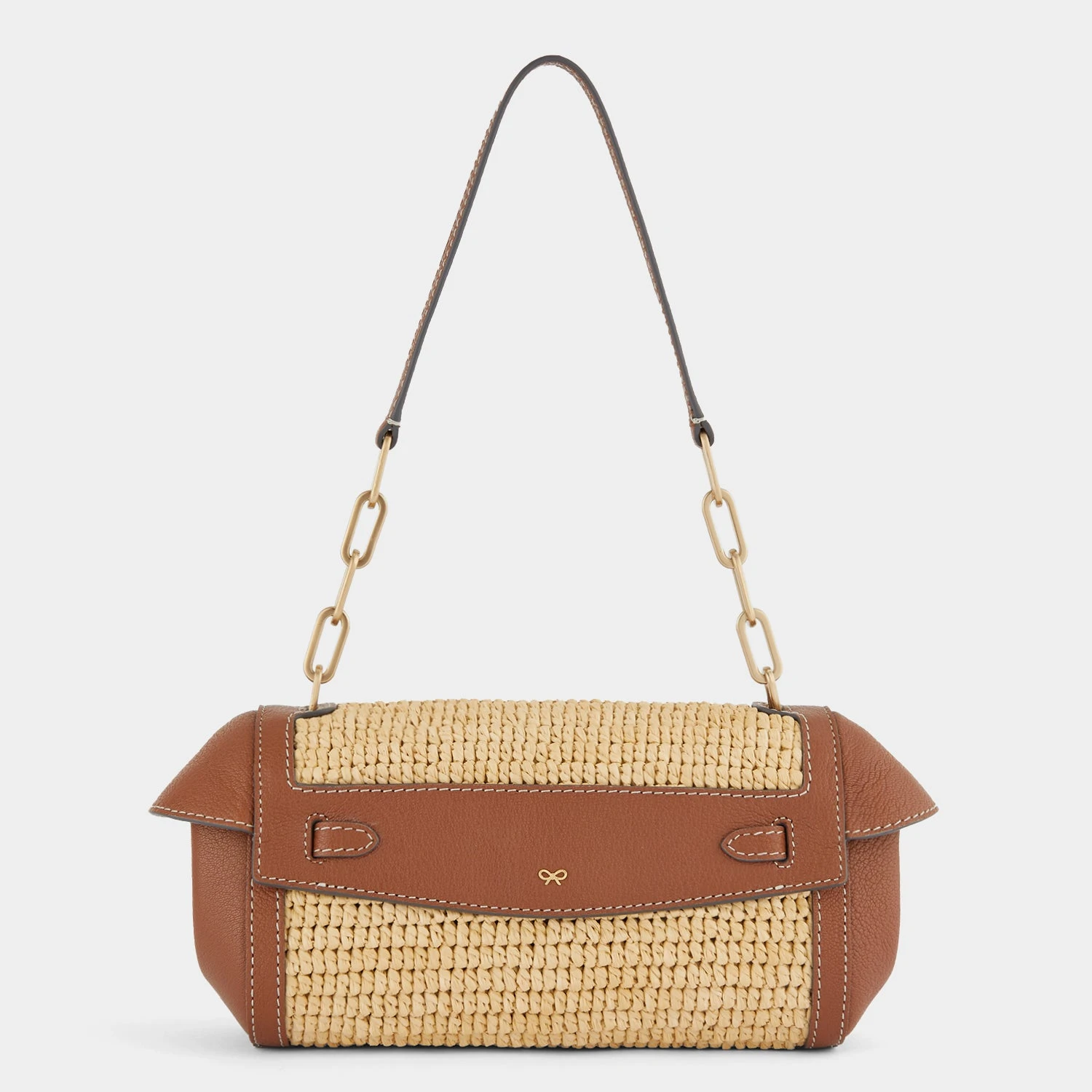Compact yet perfectly formed, the Tube Bag is thoughtfully designed to accommodate a phone, including larger models. This summer-ready version is made from crocheted natural raffia, with cedar capra leather sides and trims – highlighted by contrasting stitches – and a golden turnlock closure. We’ve left it unlined for lightness and added an adjustable strap, which can be removed to transform it into a clutch. Note the tiny golden bows – one inside and one at the back.