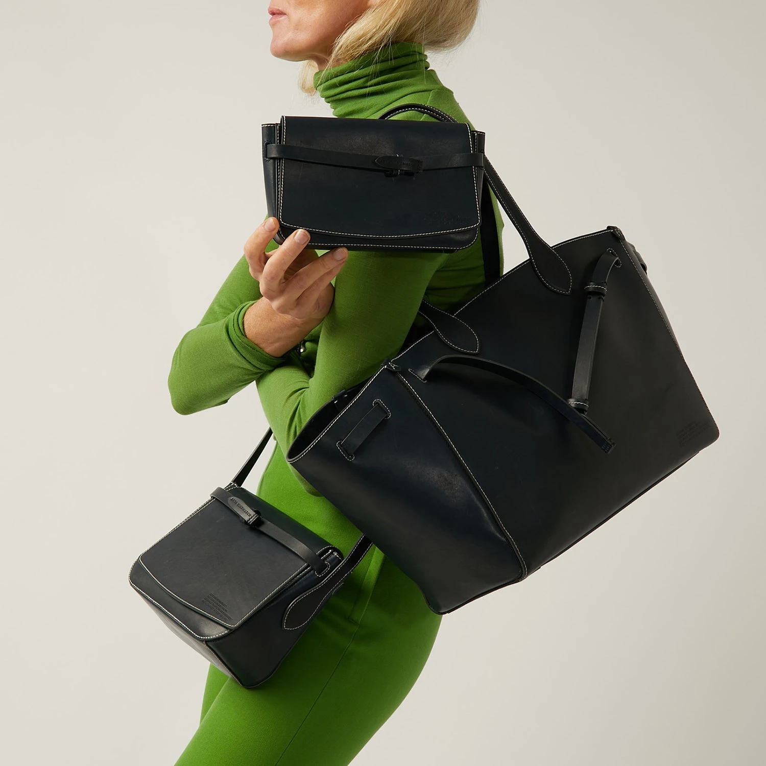 Inspired by a quote from environmentalist Arizona Muse, our founder wanted to create something that would never end up in landfill. And so, after two years of research, Return To Earth was born. Crafted entirely from natural leather to form a sturdy, envelope-shaped silhouette, this clutch uses innovative belts to keep it secure – and to leave it free from metal hardware. That means that at the end of its lifespan, this style will eventually biodegrade, compost and nourish the Earth. Its contrast stitching highlights the construction and our initials that are embroidered at the back.
