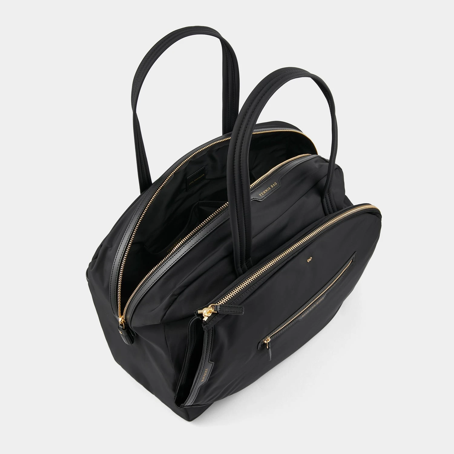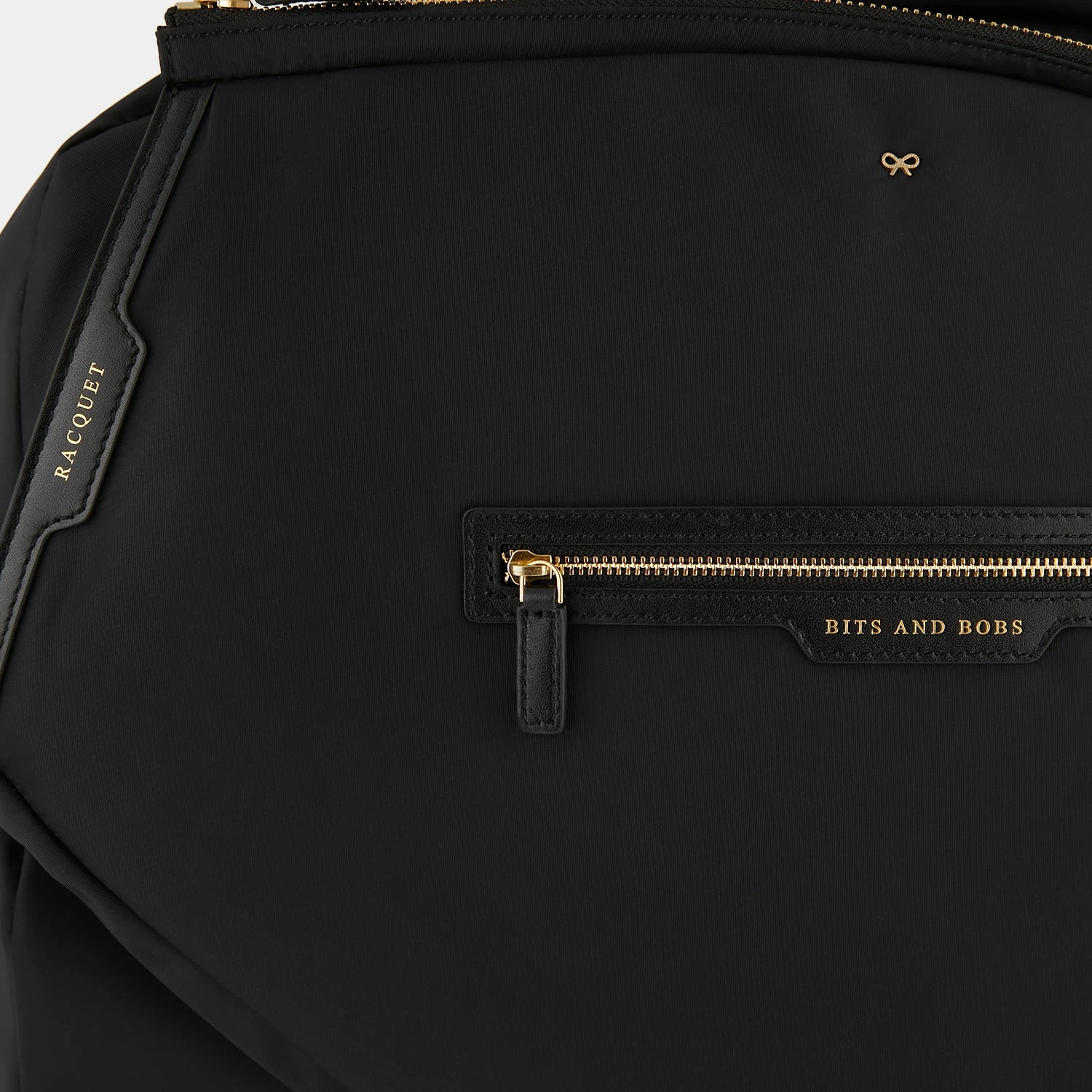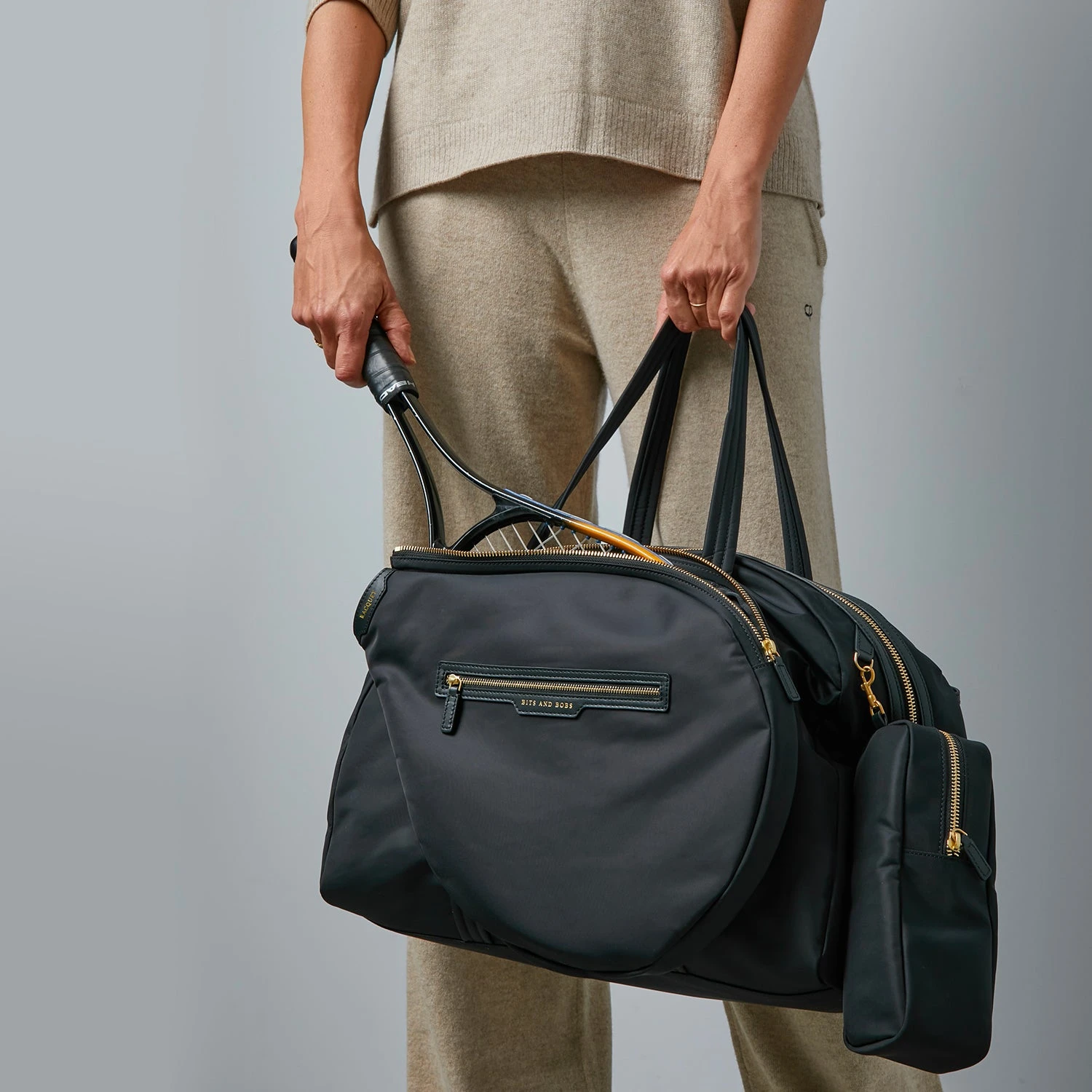 The new-season Tennis Bag is the ultimate realisation of our labelled collection. Designed with your ease and comfort in mind, it features a detachable bag for tennis balls, and a host of embossed labelled pockets, including external pockets for sunglasses, snacks and water, giving you a place for everything. The new Tennis Bag is made from ECONYL® Regenerated Nylon.