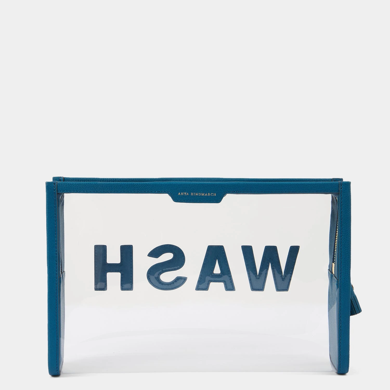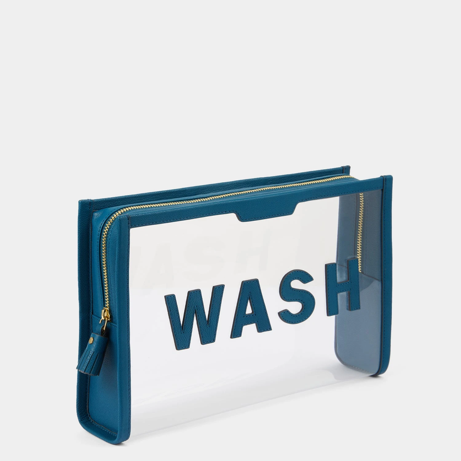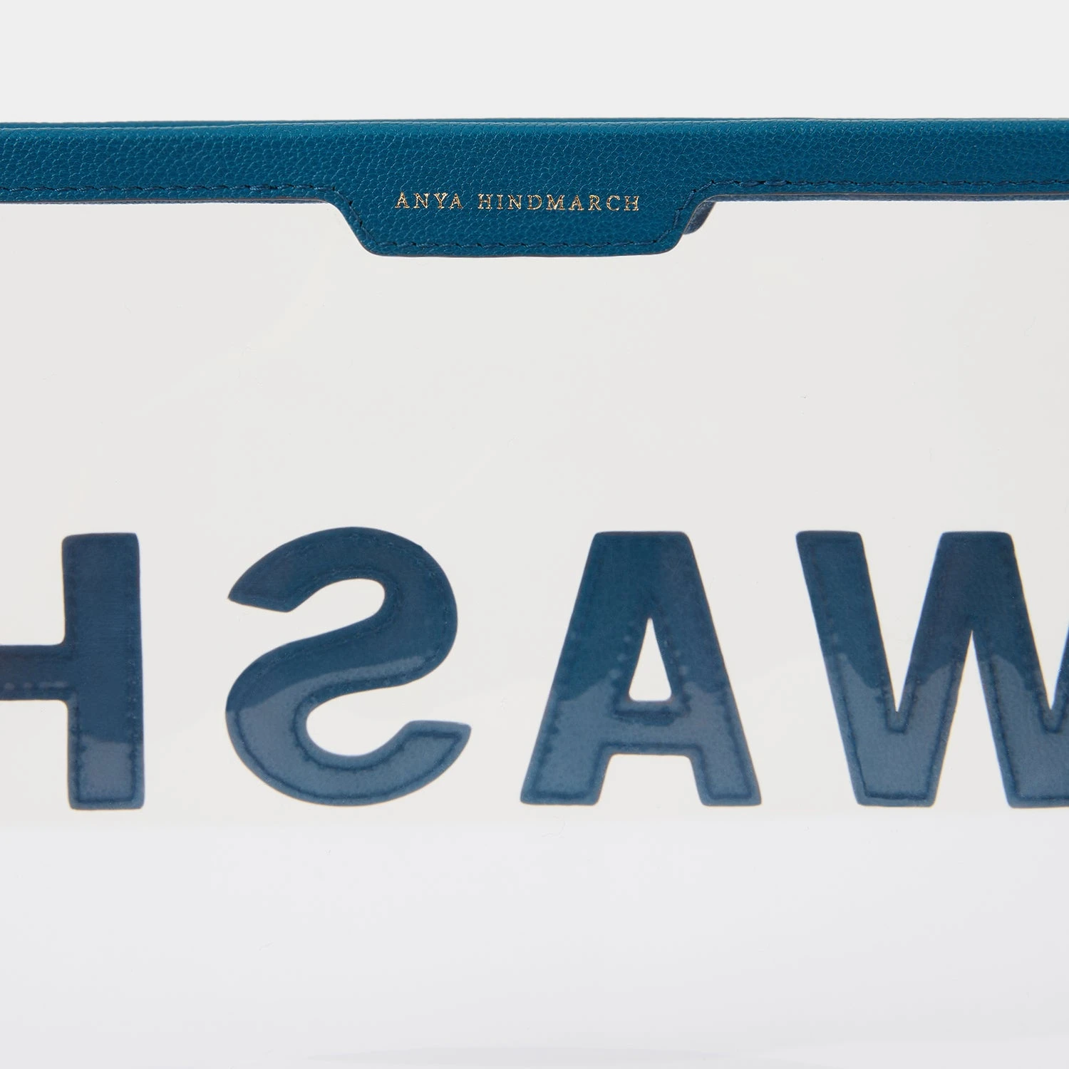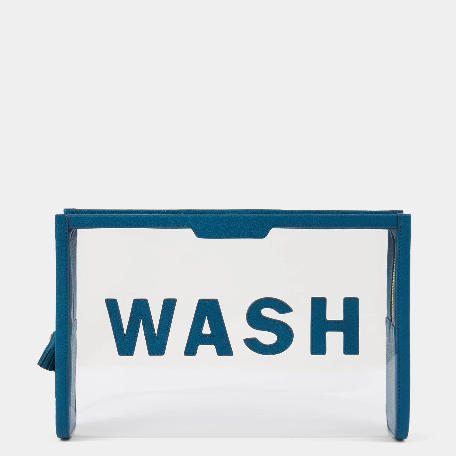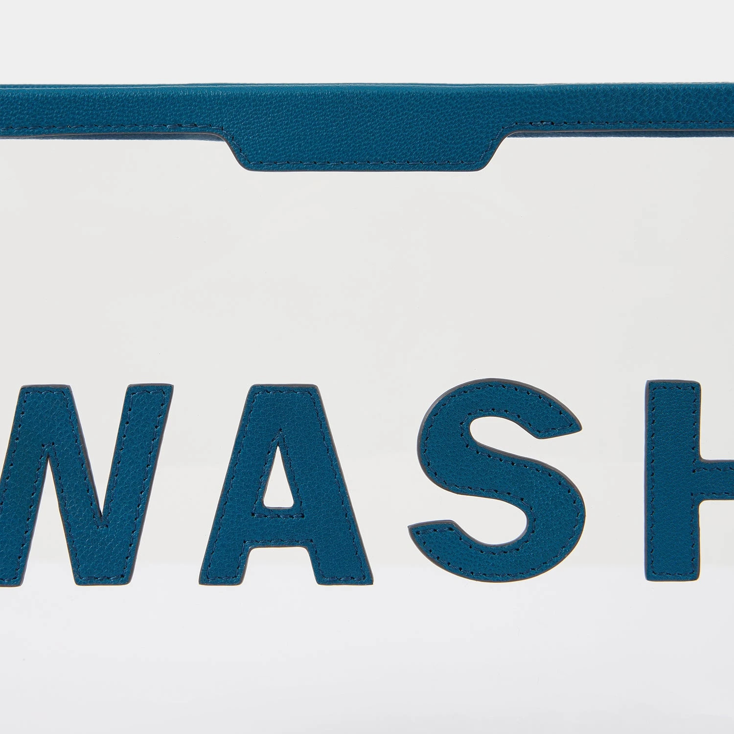 There’s nothing worse than rifling around in your suitcase or overnight bag for essential toiletries, which is why we created the Wash Pouch. It’s transparent, so you can easily locate your body wash, cleanser, and all of your other must-pack items. Text spelling ‘WASH’ in petrol-blue leather – to match the trims – nods to Anya’s legendary love of labelling.