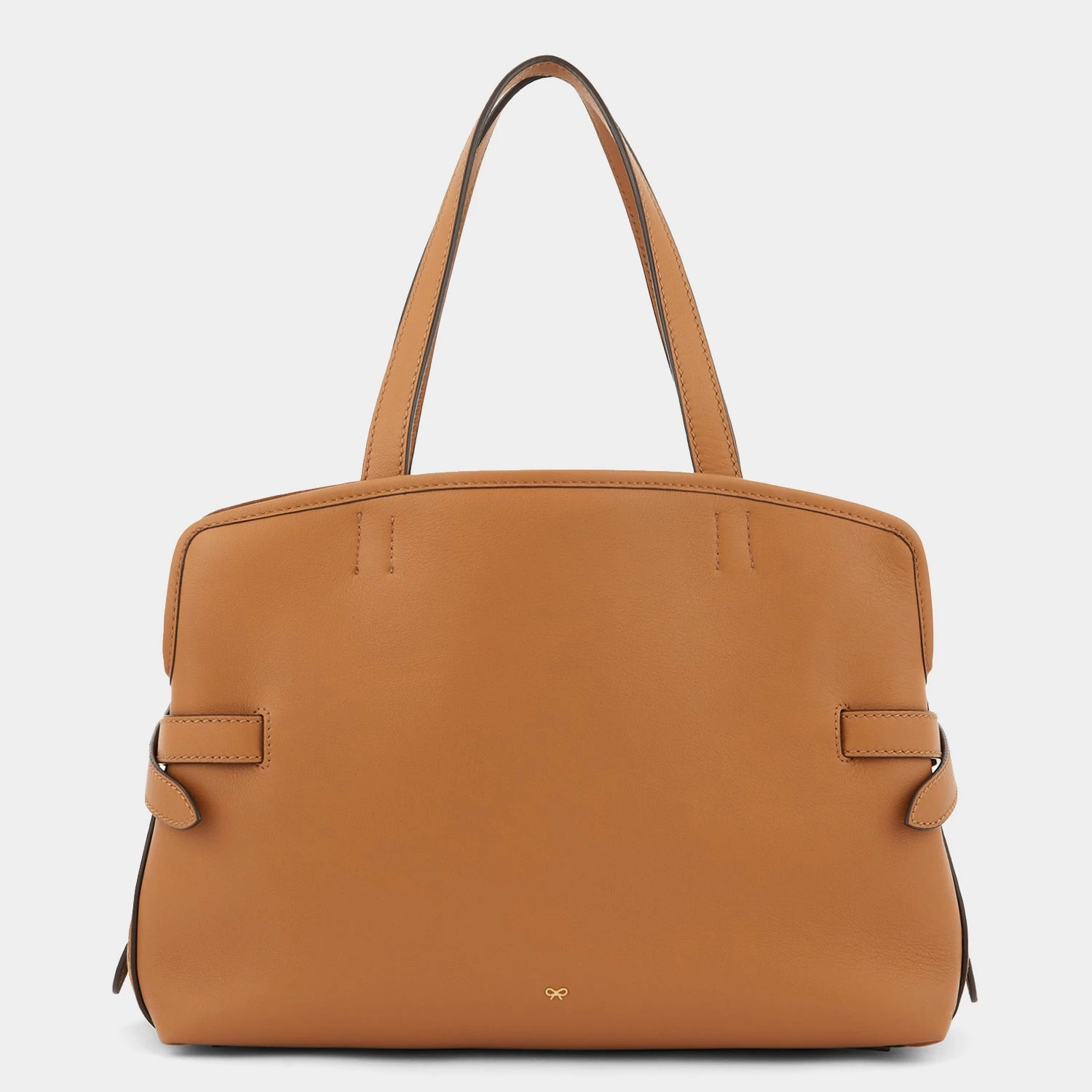 Wilson is something of a shape shifter, in the most elegant way. Made in Italy from pecan-hued calf leather and suede, this essential shoulder bag comes equipped with belt closures that can be left undone for a slouchier, more casual look. Taking Wilson to an important meeting? Secure the buckled straps and tuck its zip into the golden bridge for a sleeker, smarter option. A trio of compartments will house everything you need, while the twist lock-accented slip pocket is perfect for a tablet or essential documents on travel days.