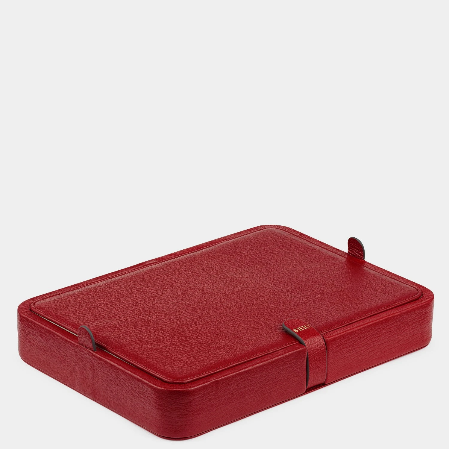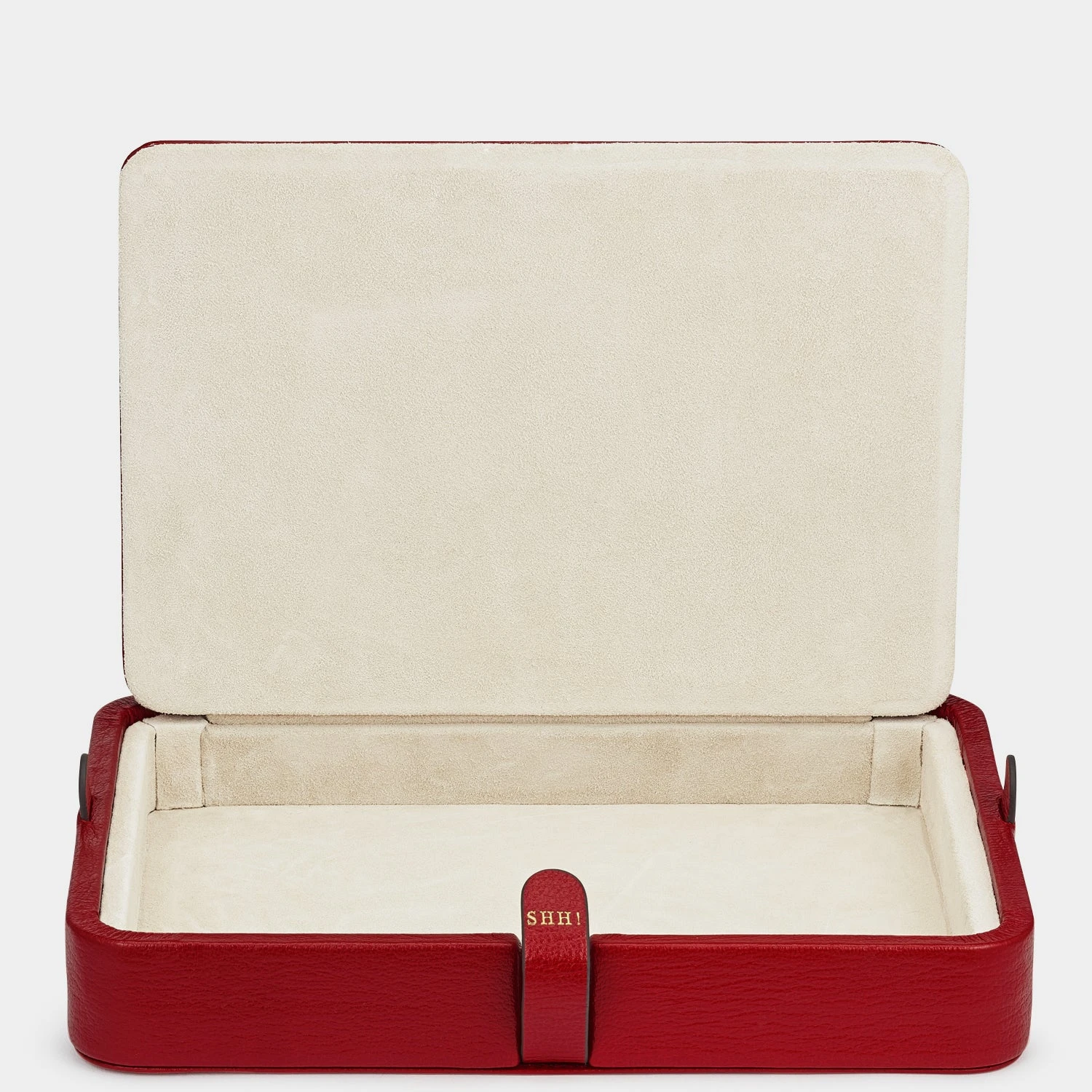 In capra leather, this finely crafted insert makes a fine companion to our XL Keepsake Box. To the untrained eye, it looks like a lid – which can be lifted out by the side tabs – but take a closer look and there is a secret, suede-lined compartment (opened via a poppered tab labelled ‘Shh!’), in which to stow extra-special memories.
