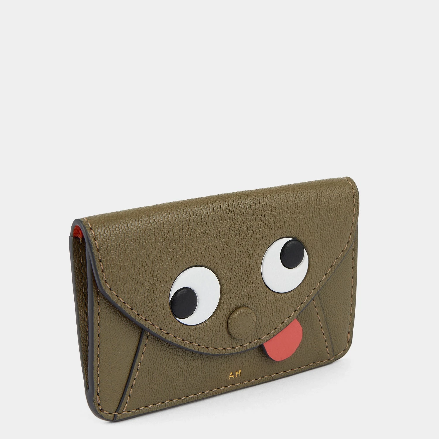 Artful and amusing in equal measure, our Zany Envelope Card Case will deliver dopamine every time you reach for a card. It’s made from shiny, fern-coloured leather with printed eyes and a stitched tongue, and opens to reveal a colour-blocked interior, with space for travel and loyalty cards. On the other side, there are slots for credit and debit cards, with an embossed label.