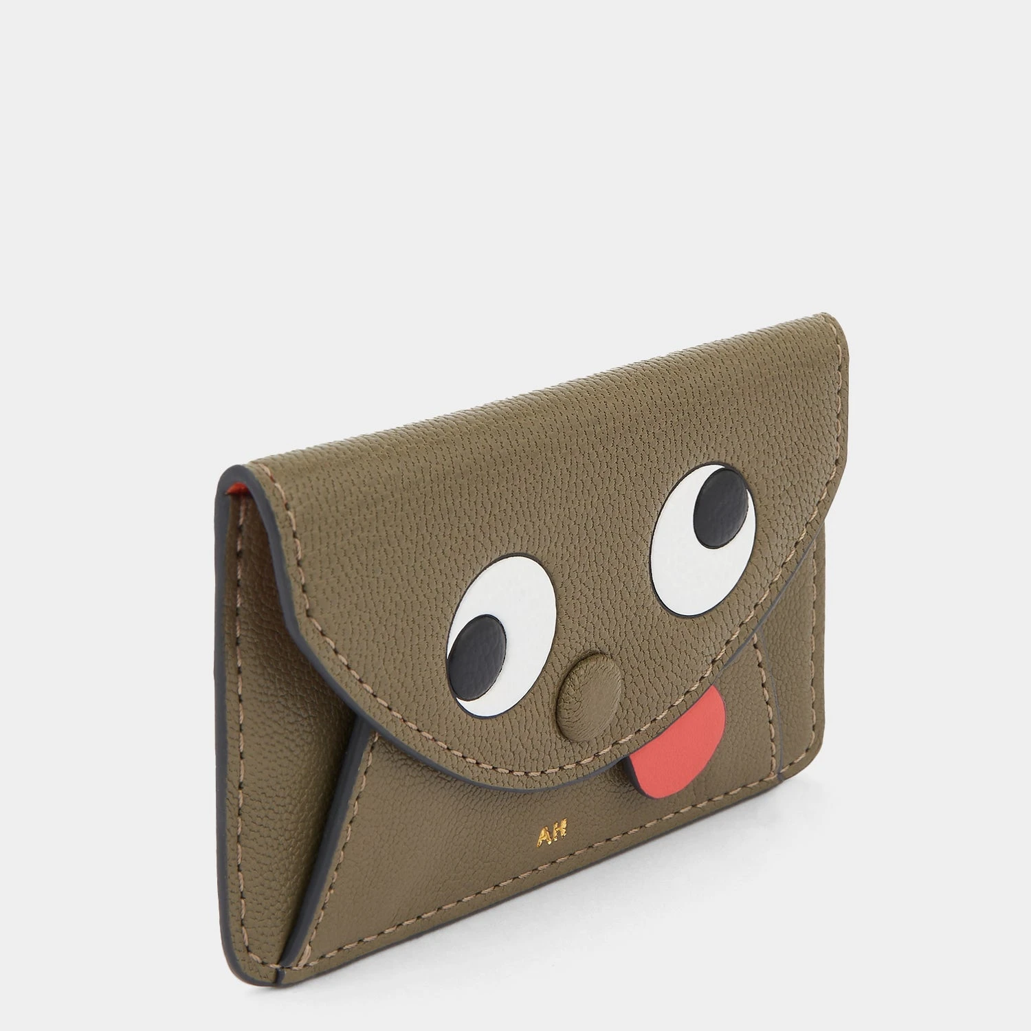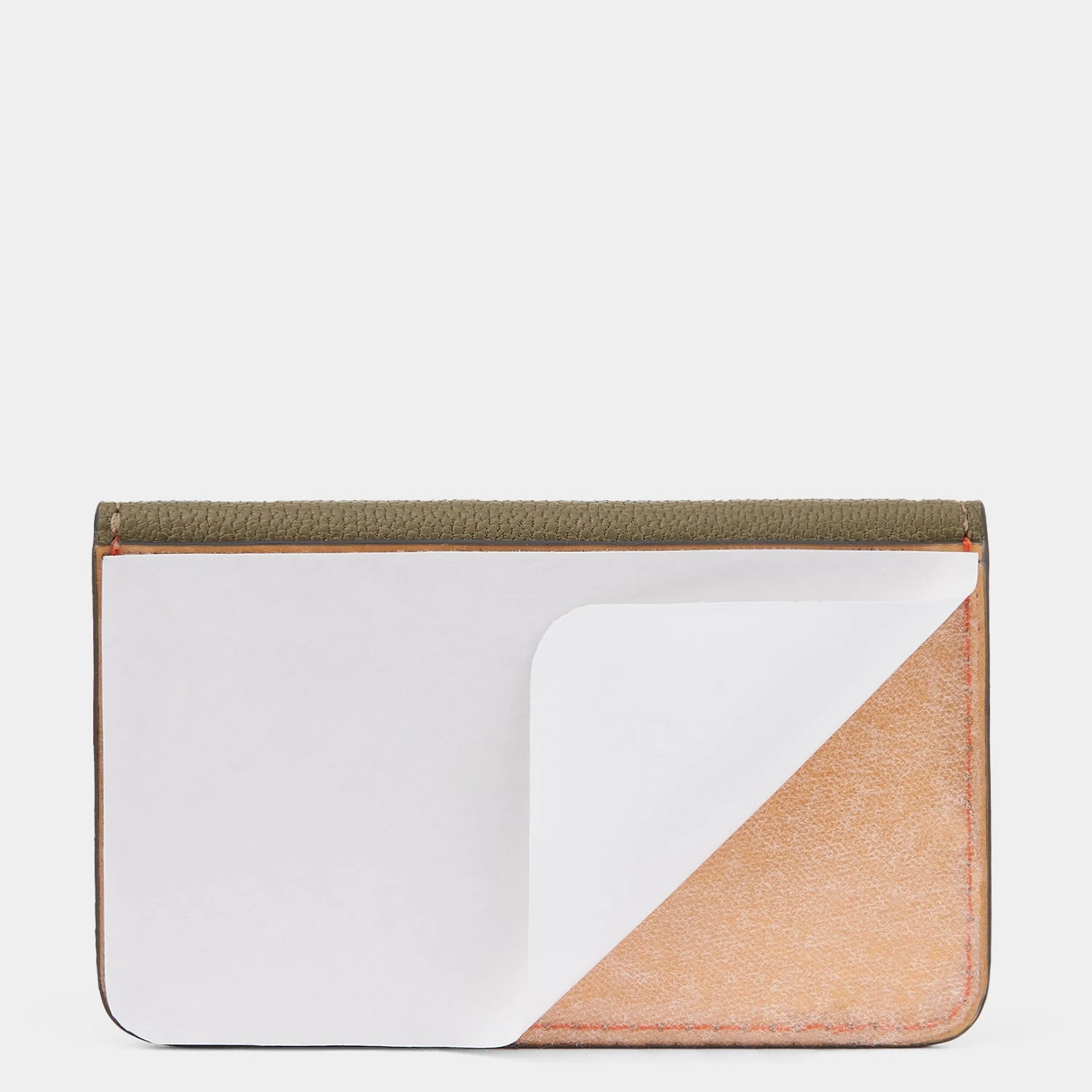 Add personality to your favourite bag or phone with our Zany Envelope Purse Sticker. Perfect for cards, receipts, or spare change, this fern leather case is printed with a pair of peepers, and stitched with a clementine-coloured tongue and popper ‘nose’. It is designed with an adhesive back that can be easily applied to a bag, transforming it both in terms of form and function.