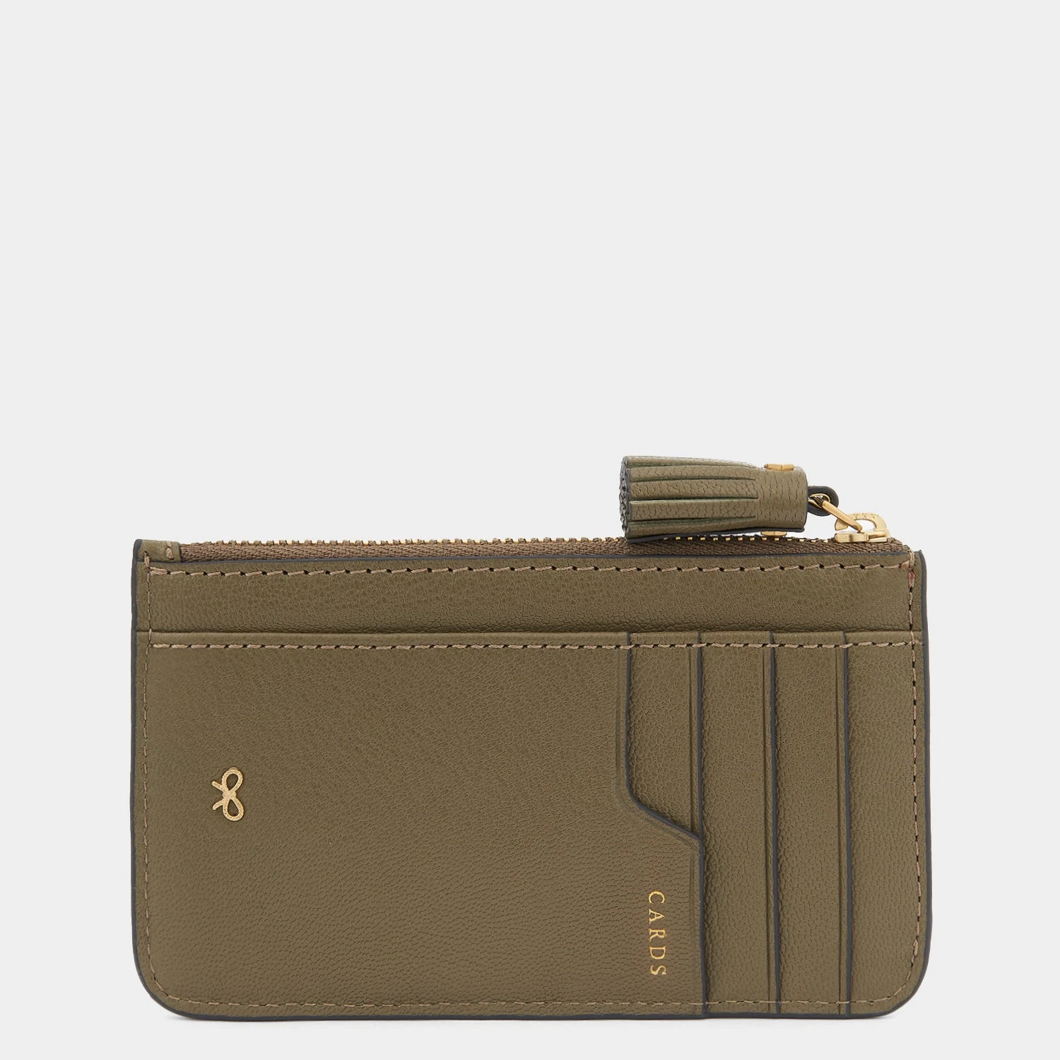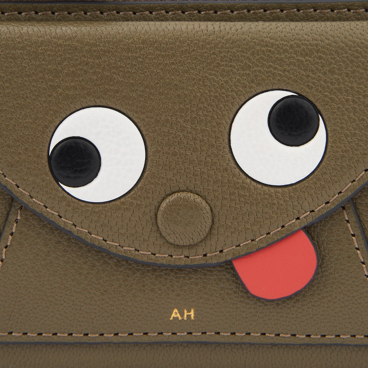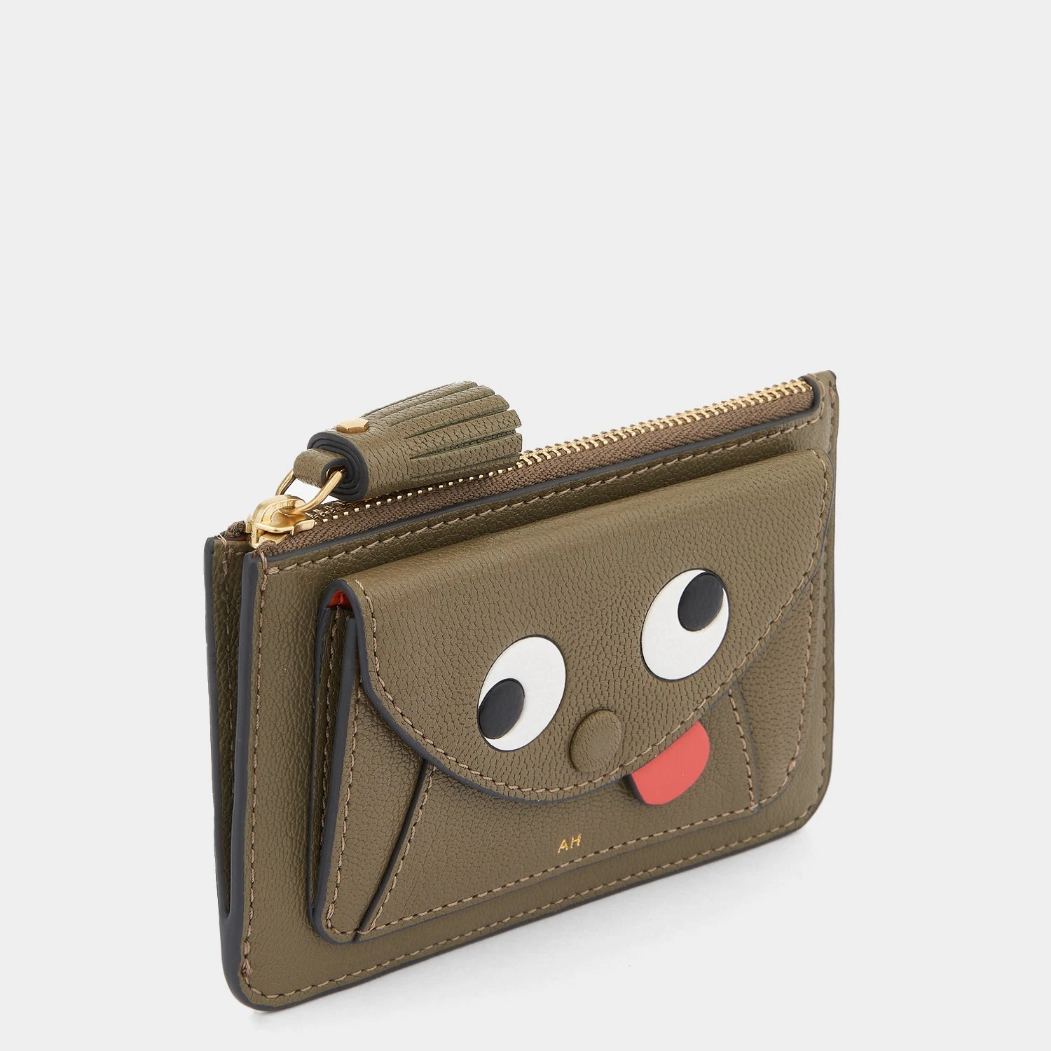 A serotonin boost in the form of an accessory, the Zany Envelope Zip Card Case is distinguished by a playful face – complete with wacky eyes and poking-out tongue. It is masterfully made from fern and clementine-hued leather, with card slots, an envelope-style pocket and a zipped section, for coins. The gold embossing, tiny bow, and tassel are all classic Anya elements.